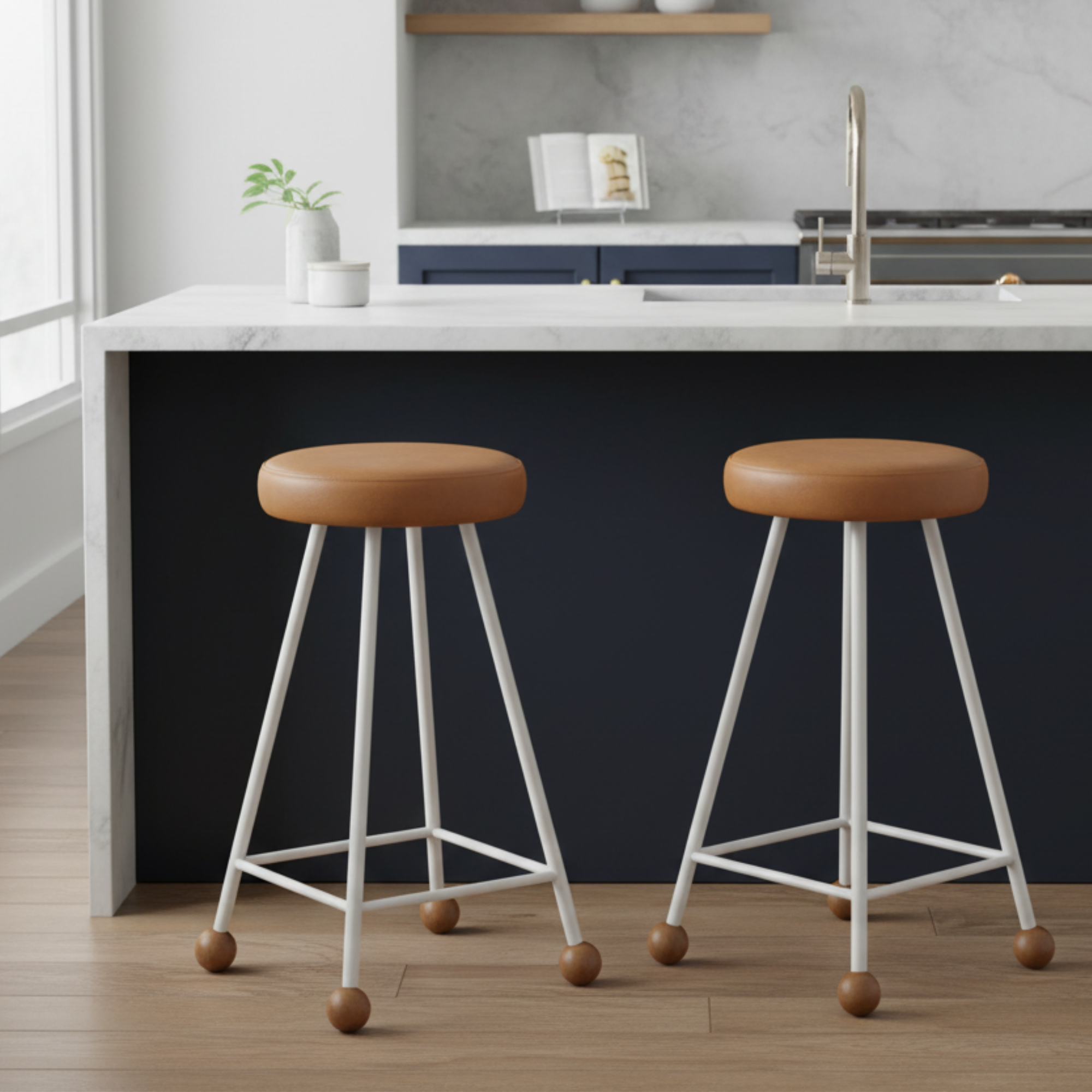 Bar Taburesi Deri Döşemeli Kahverengi Metal Ayaklı – 65cm