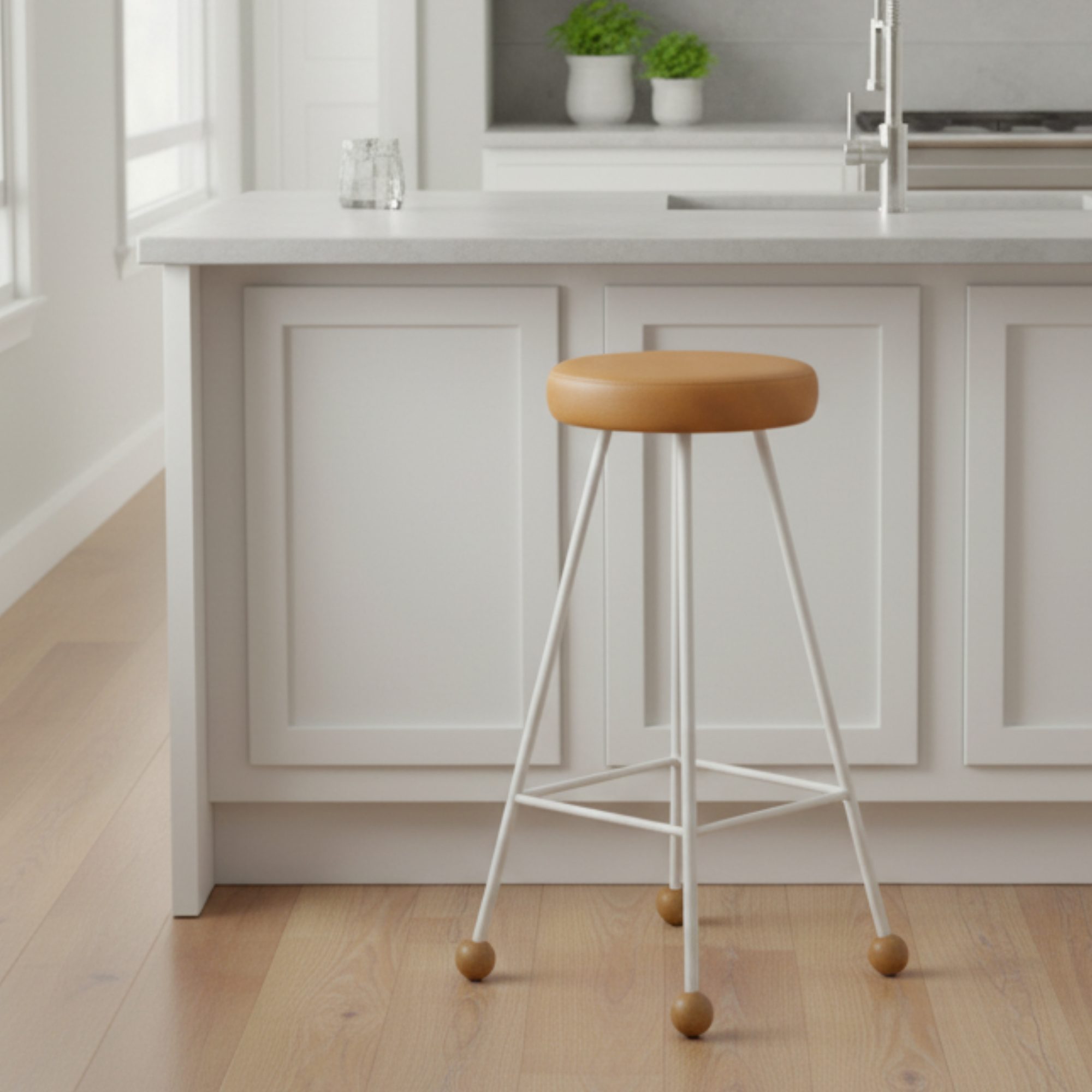 Bar Taburesi Deri Döşemeli Kahverengi Metal Ayaklı – 75cm