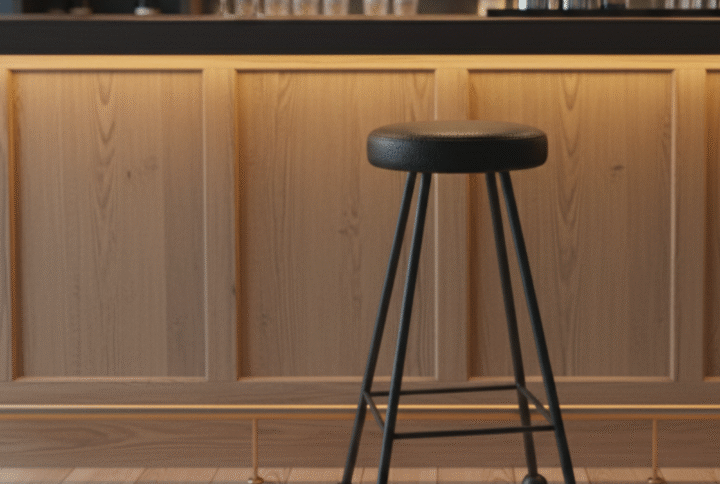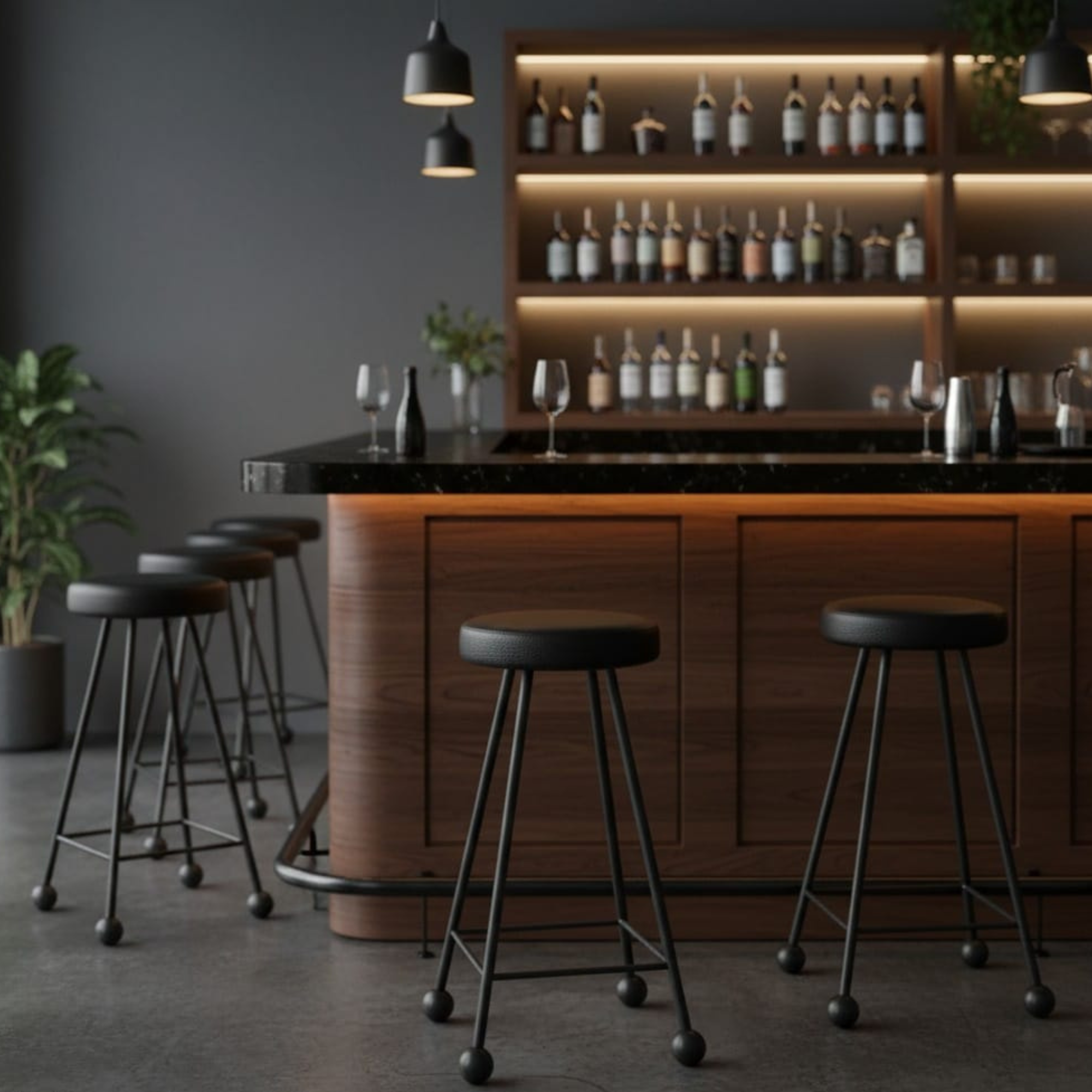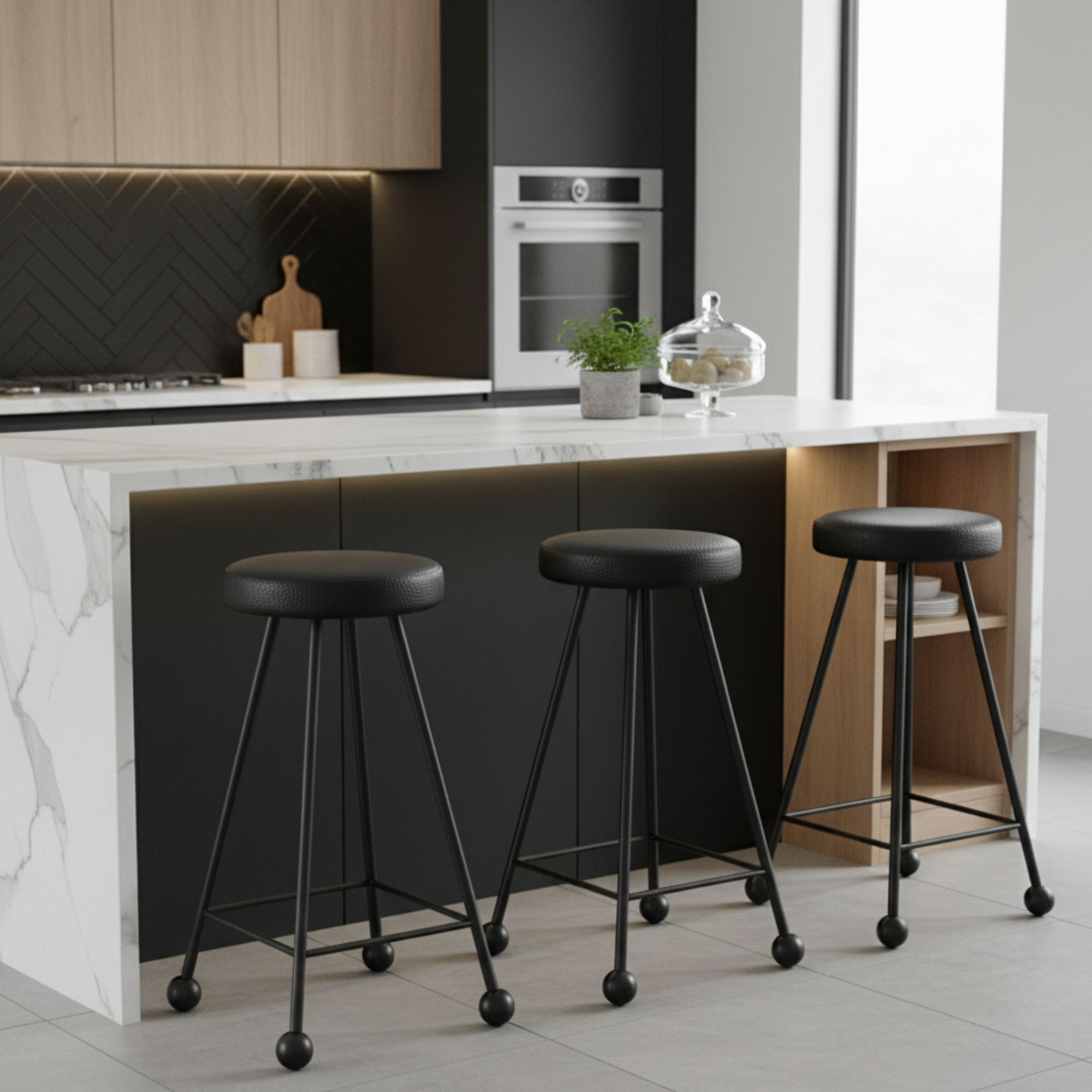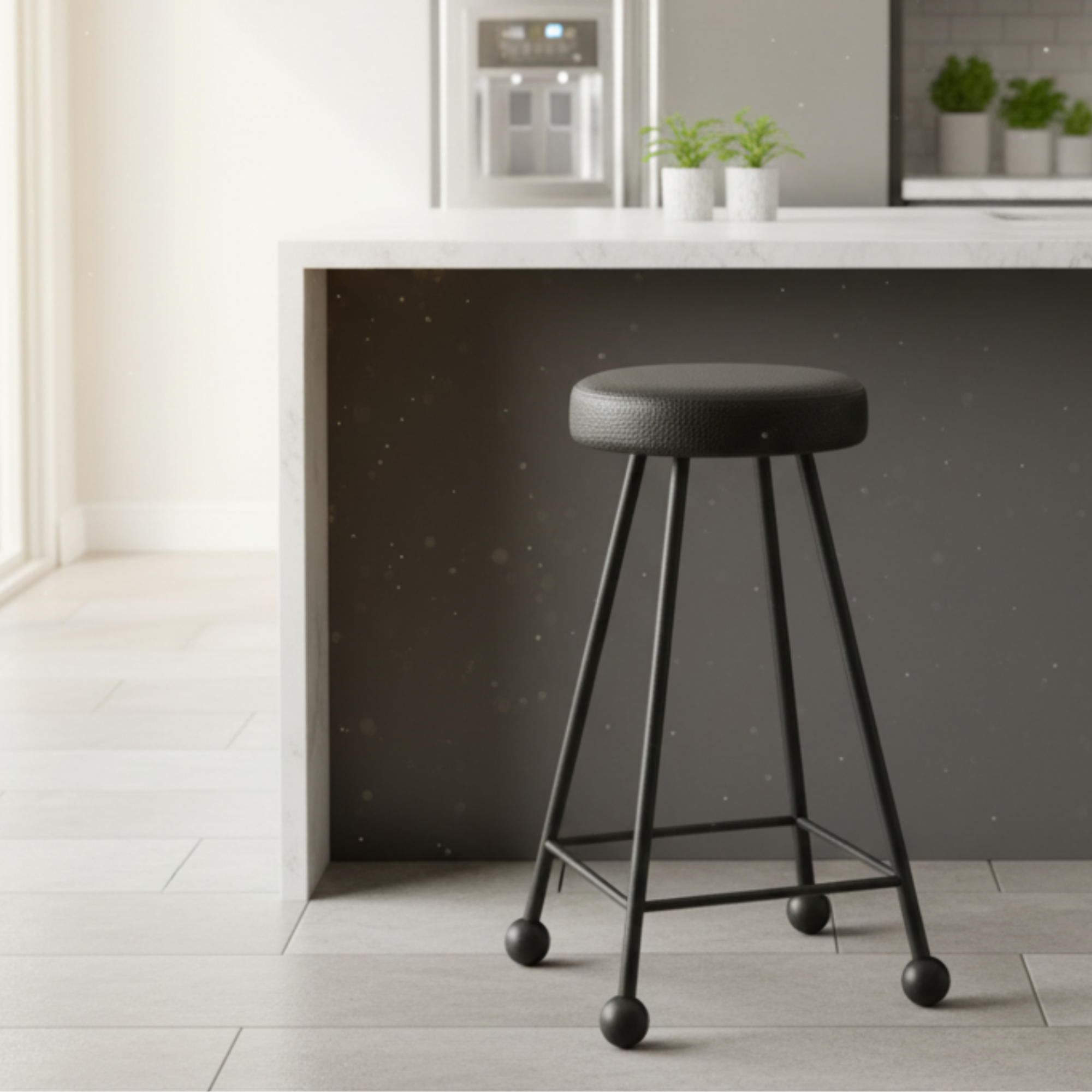 Bar Taburesi Deri Döşemeli Simsiyah Metal Ayaklı – 65cm