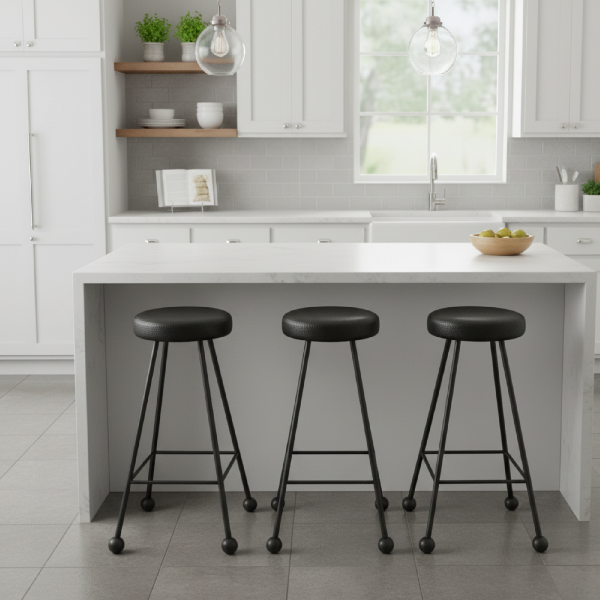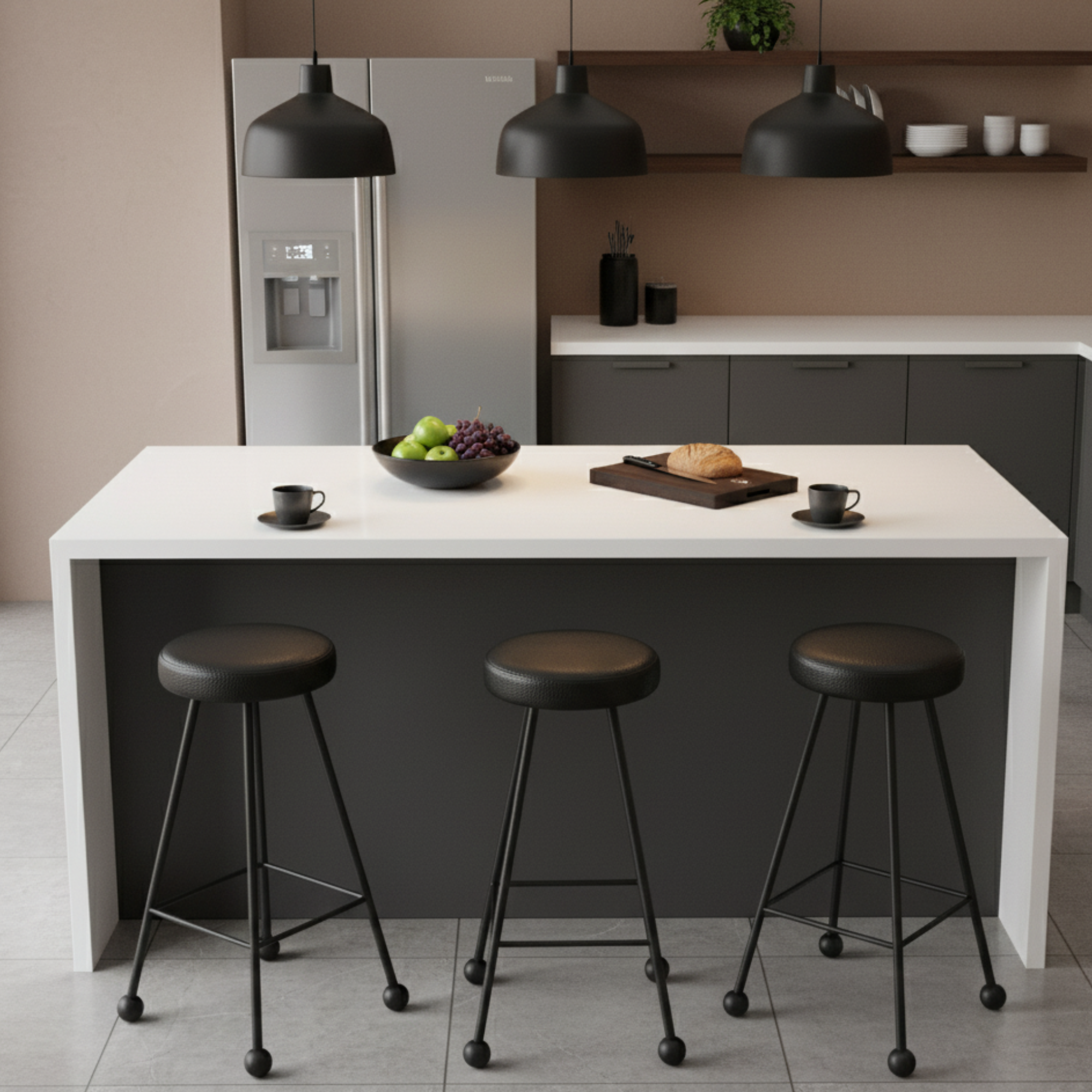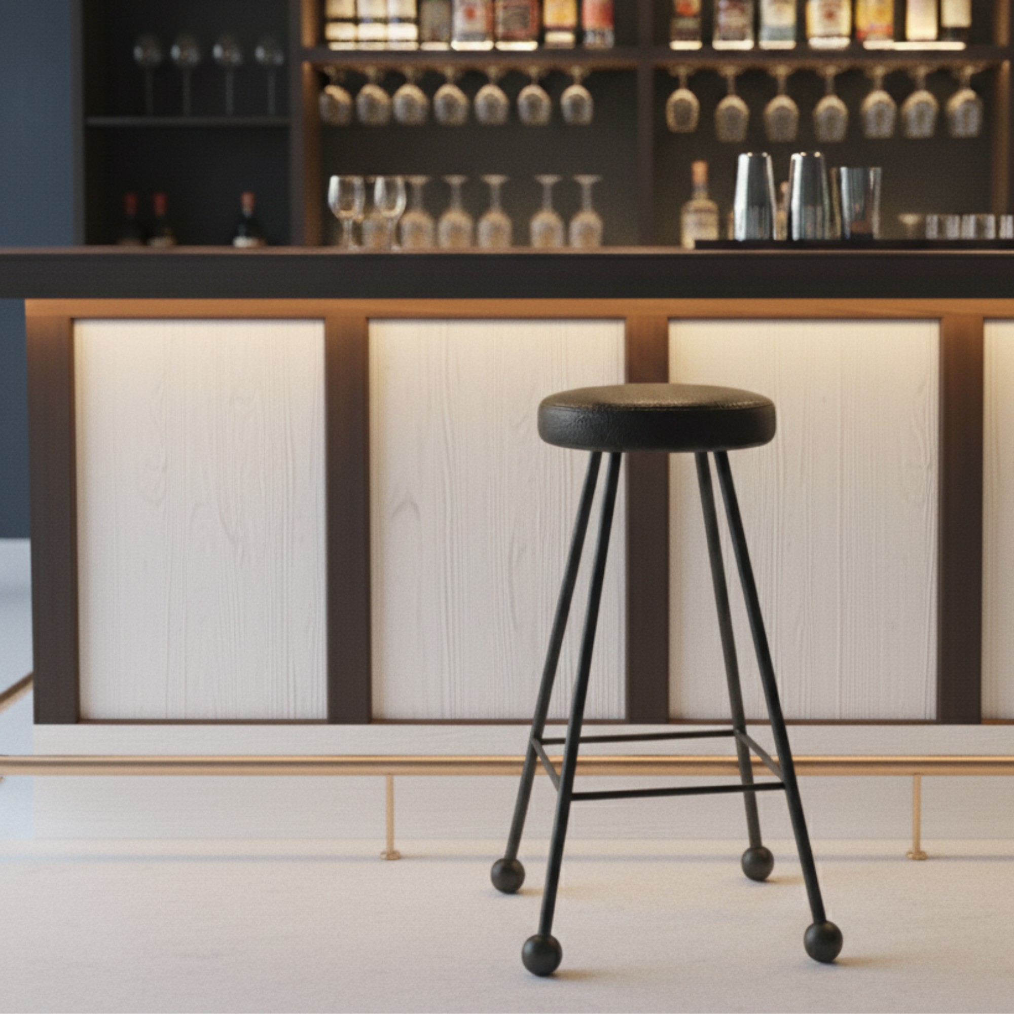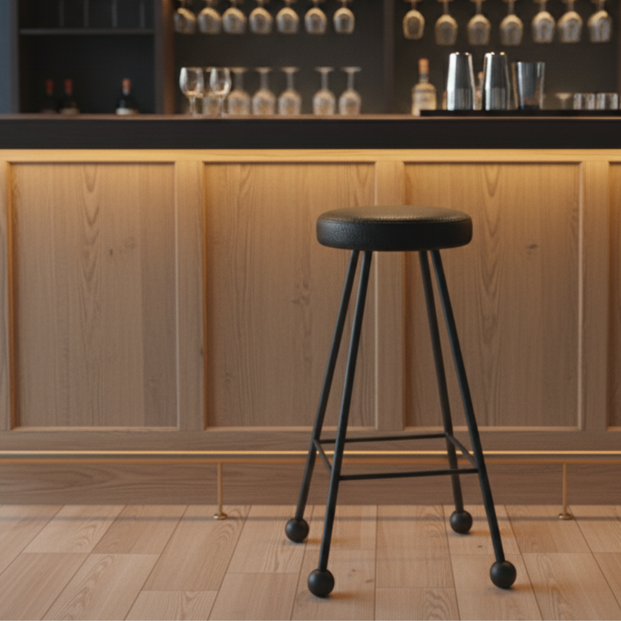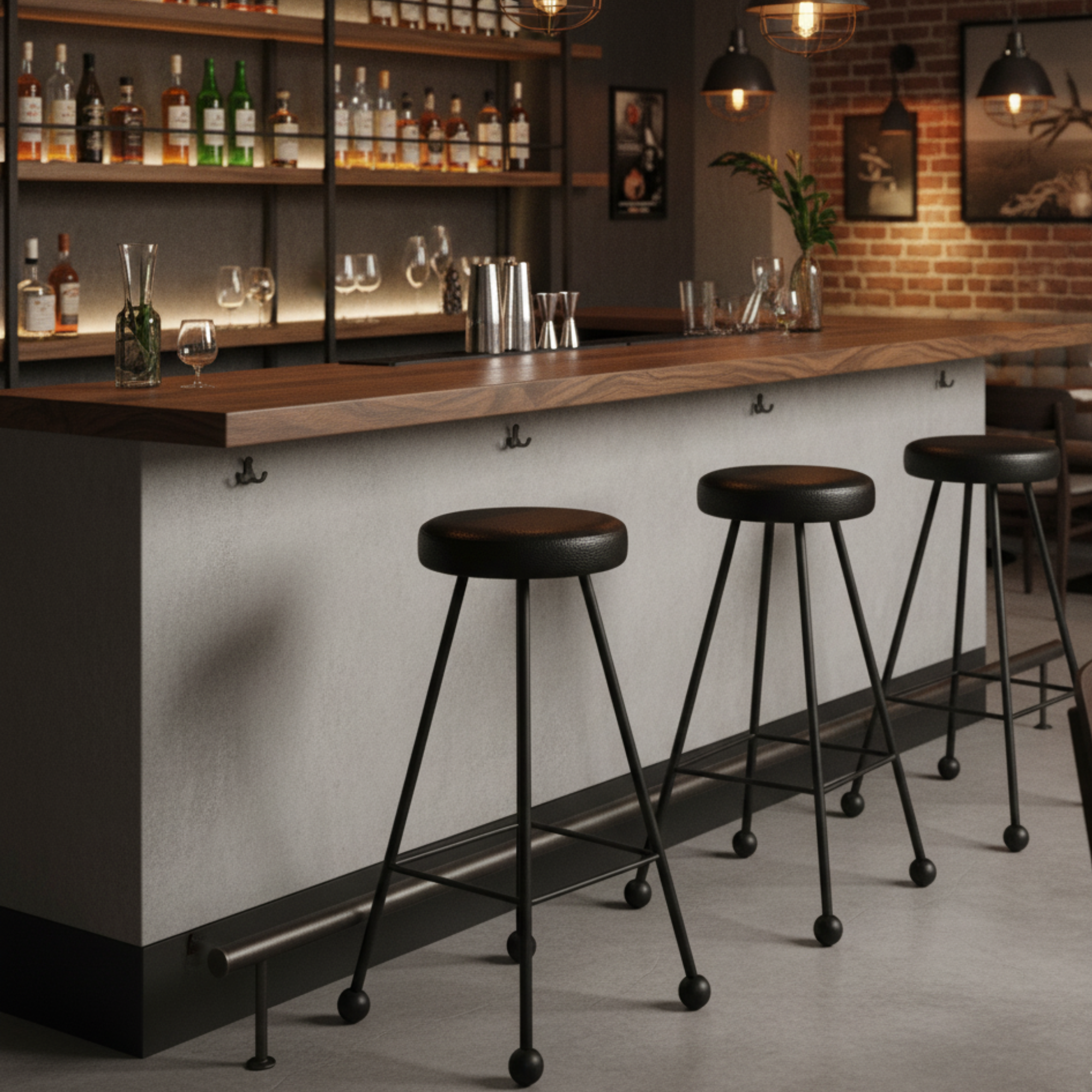 Bar Taburesi Deri Döşemeli Simsiyah Metal Ayaklı – 75cm