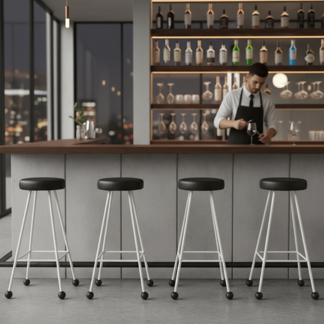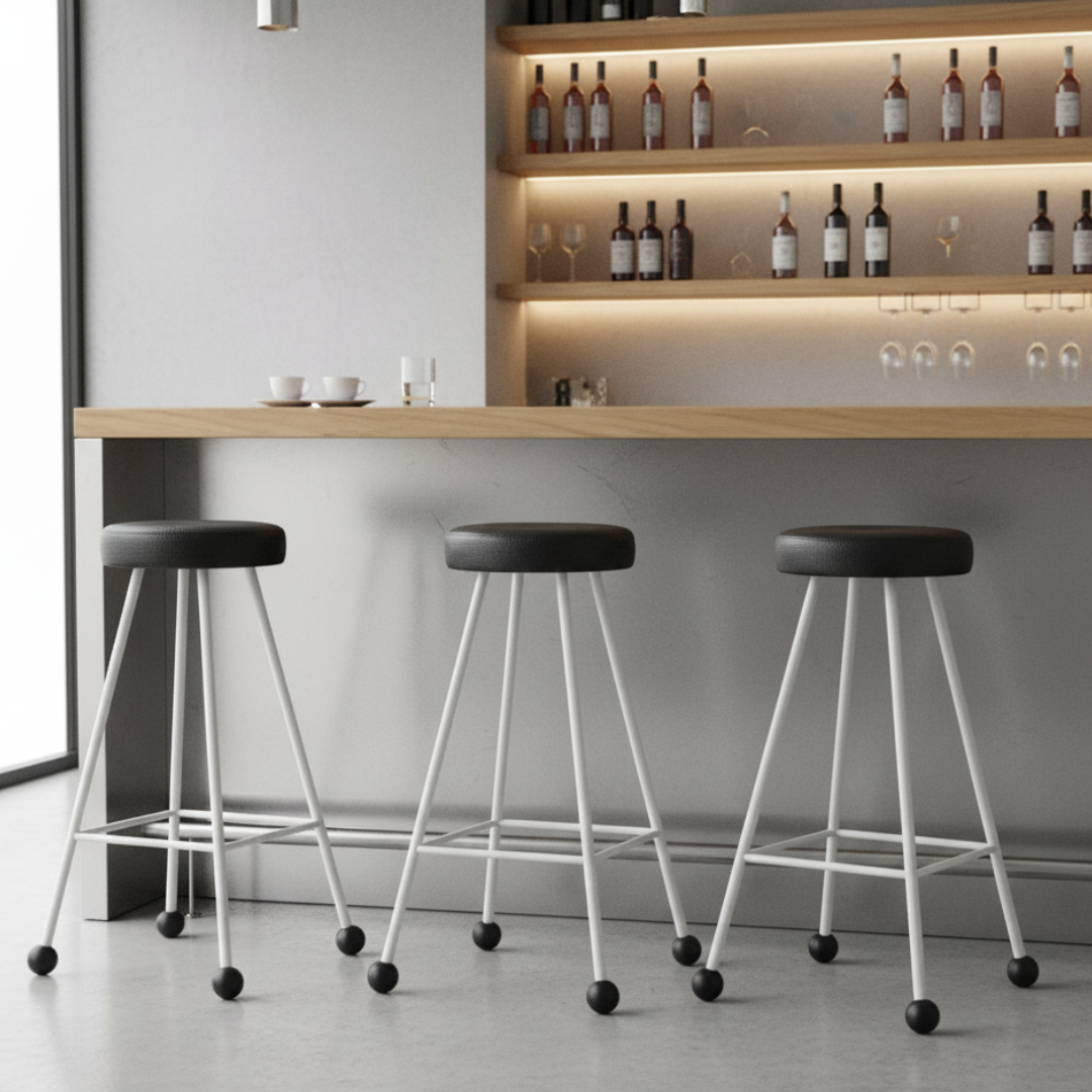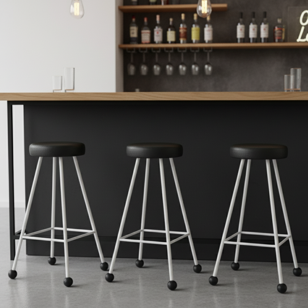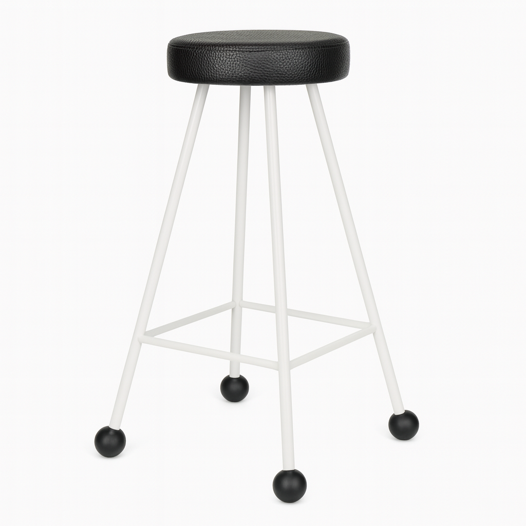 Bar Taburesi Deri Döşemeli Siyah Beyaz Metal Ayaklı – 75cm