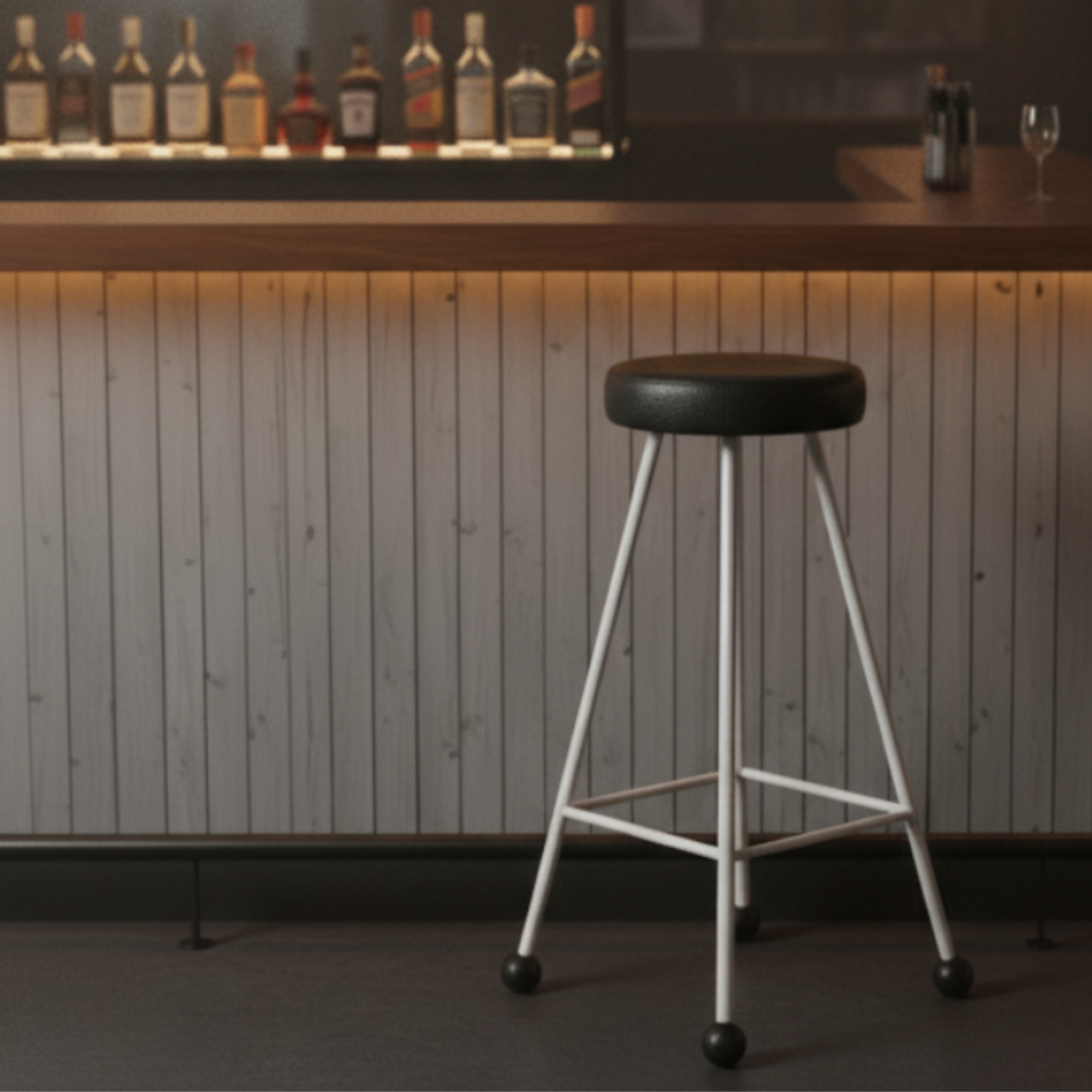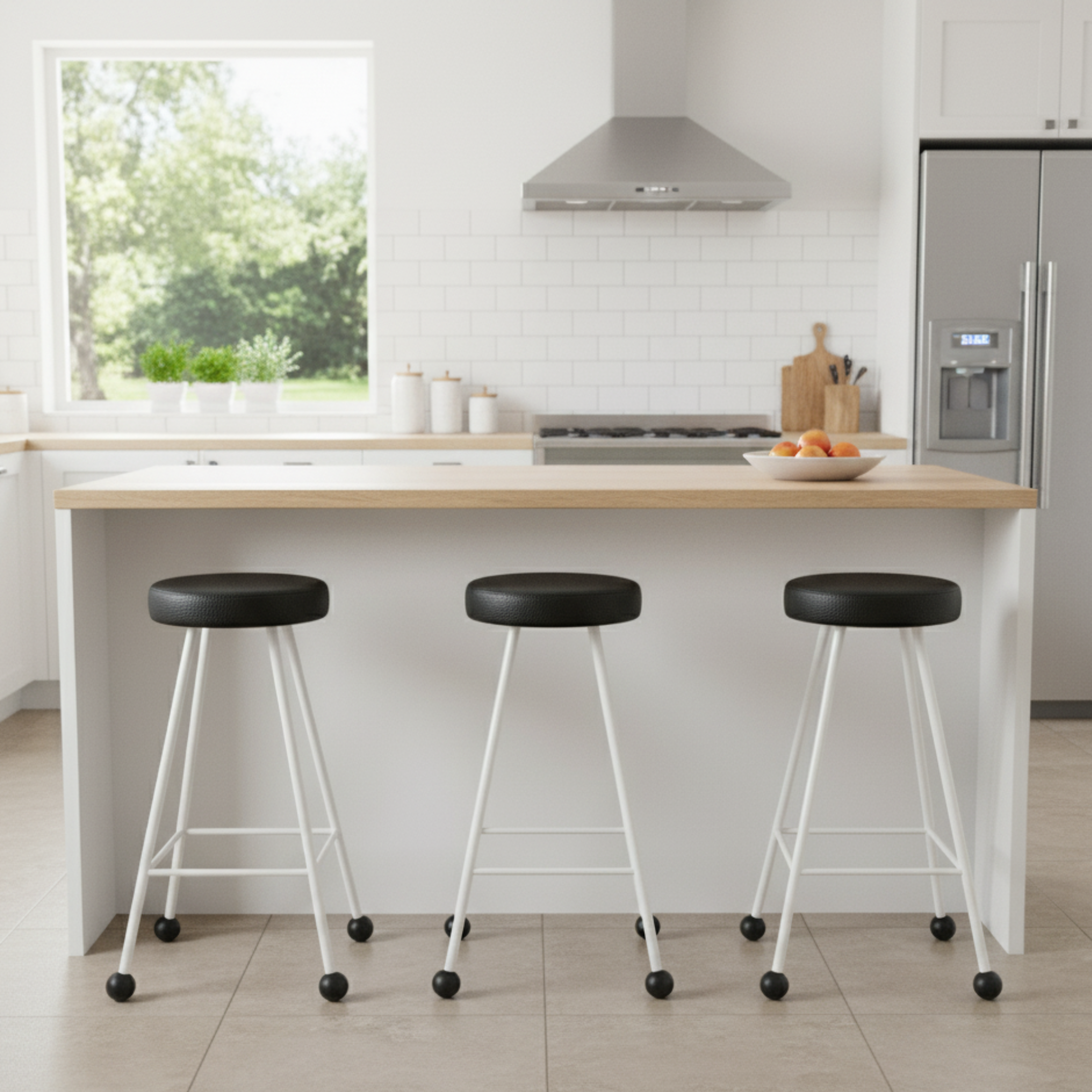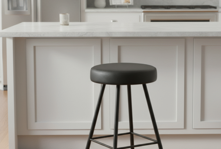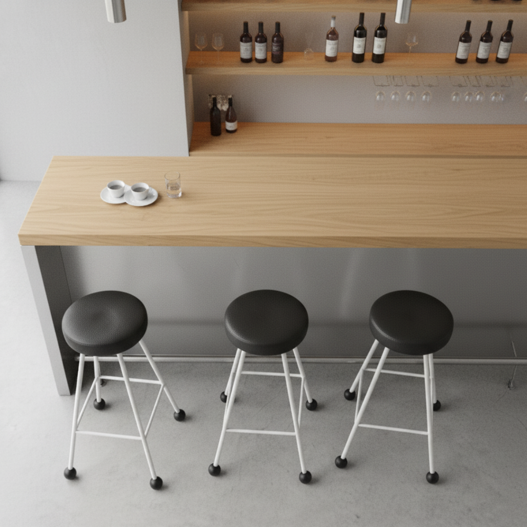 Bar Taburesi Deri Döşemeli Siyah Beyaz Metal Ayaklı – 75cm