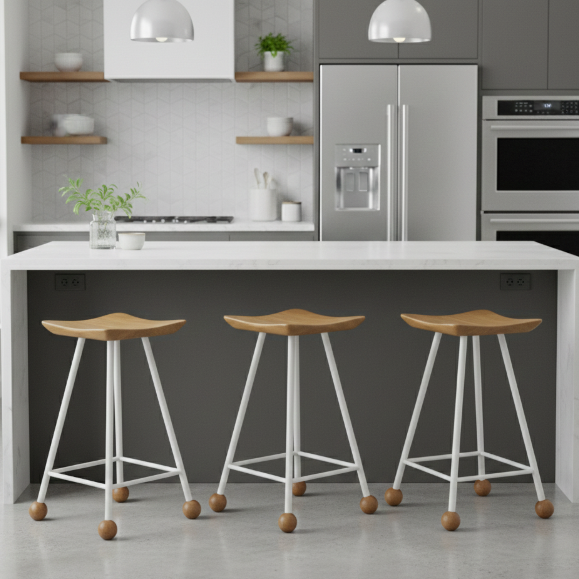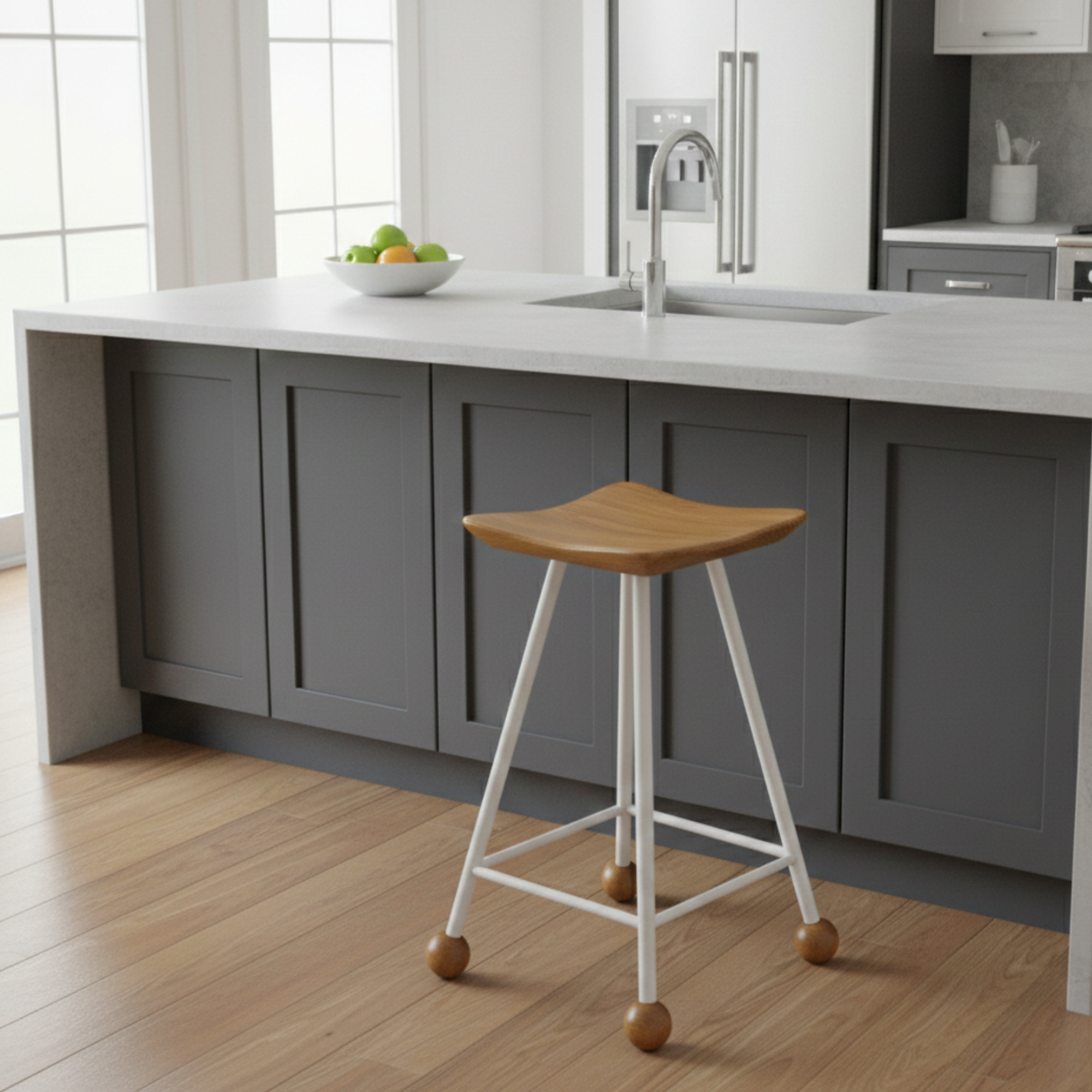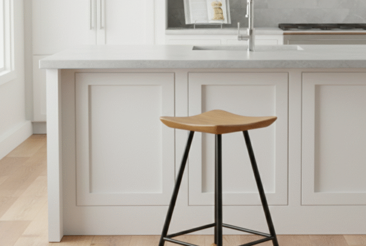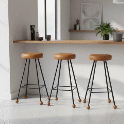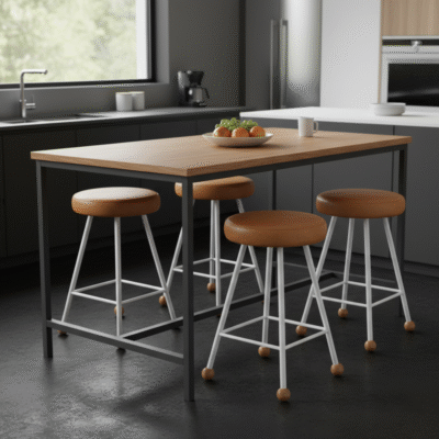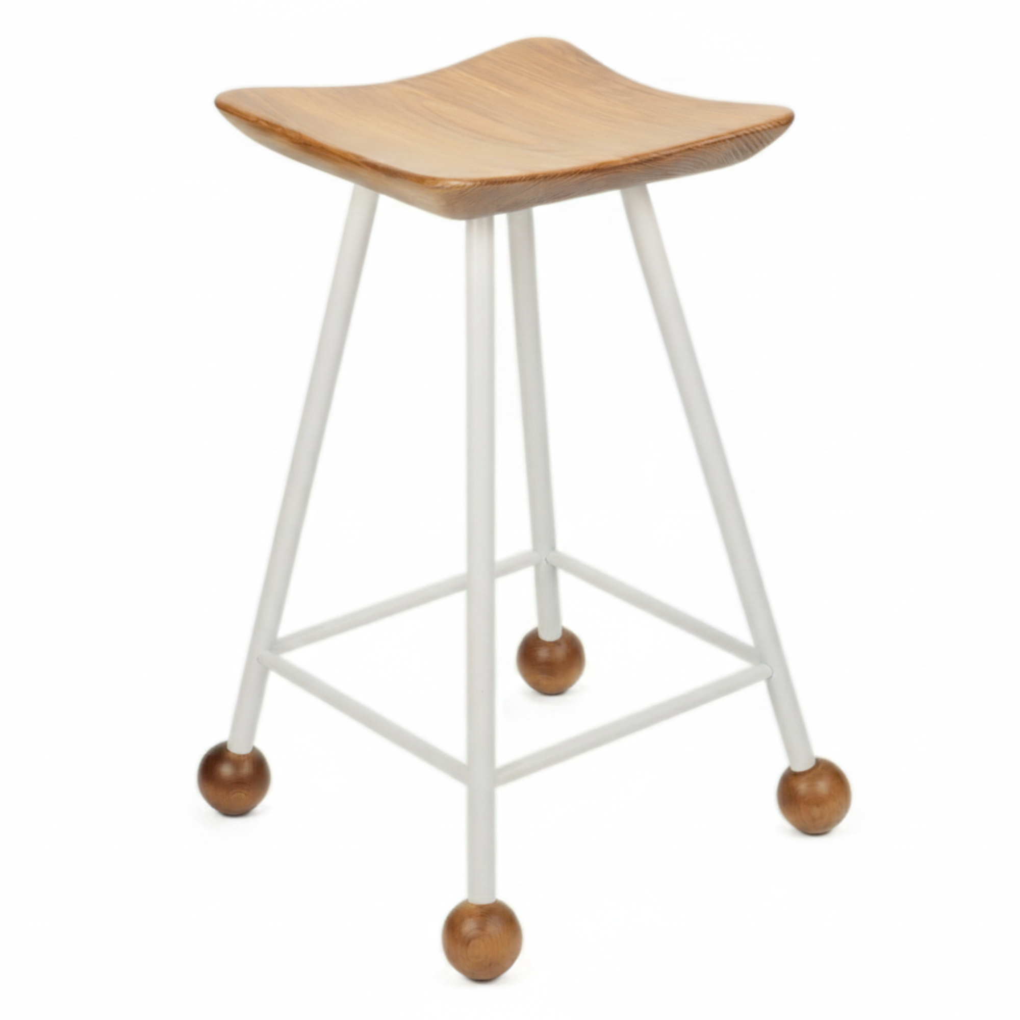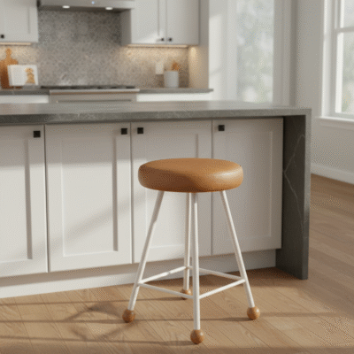Tabure Ahşap Beyaz Metal Ayaklı – 55cm