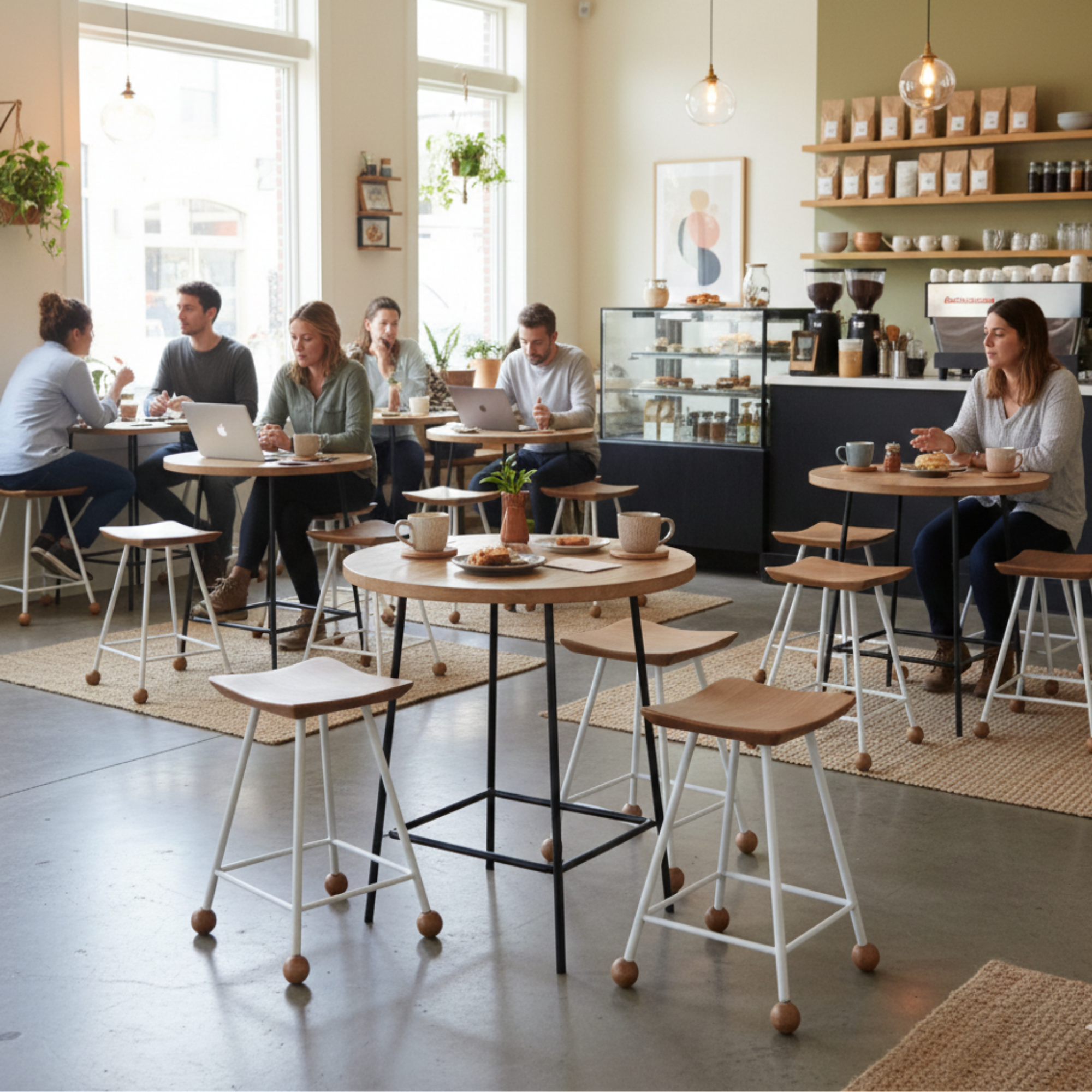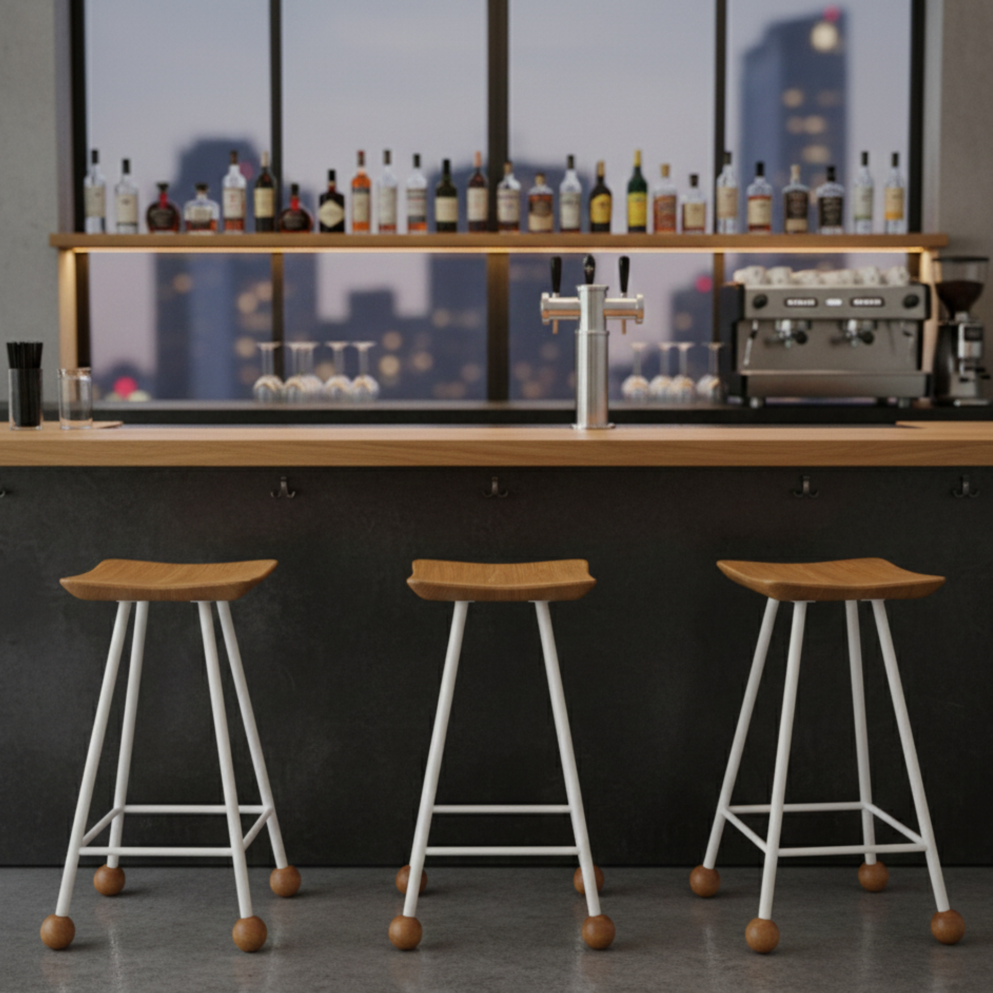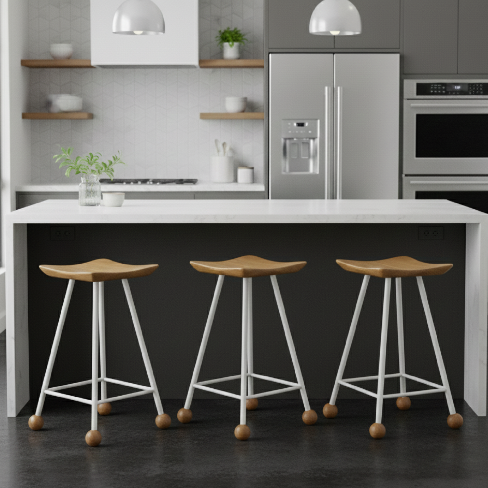 Tabure Ahşap Beyaz Metal Ayaklı – 55cm