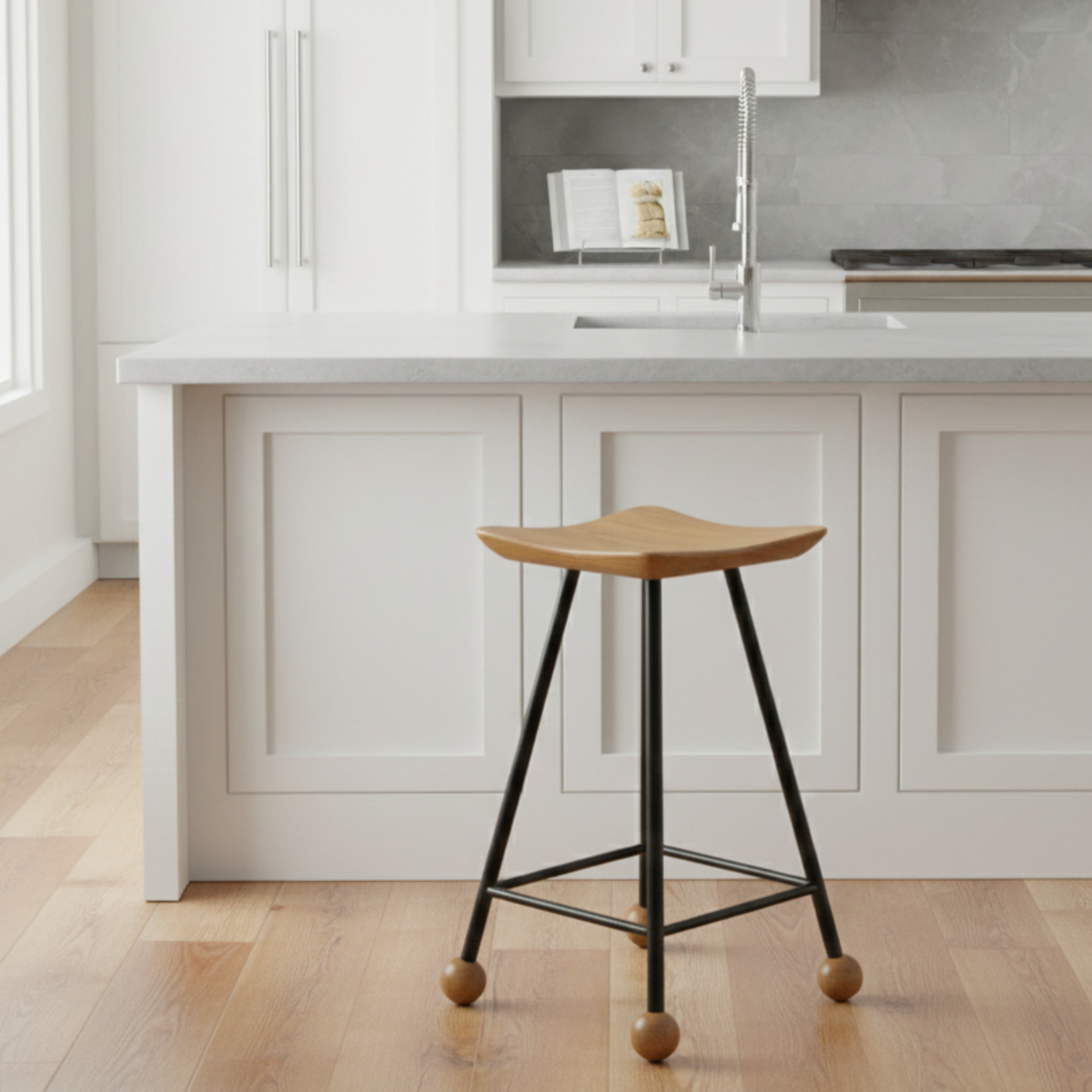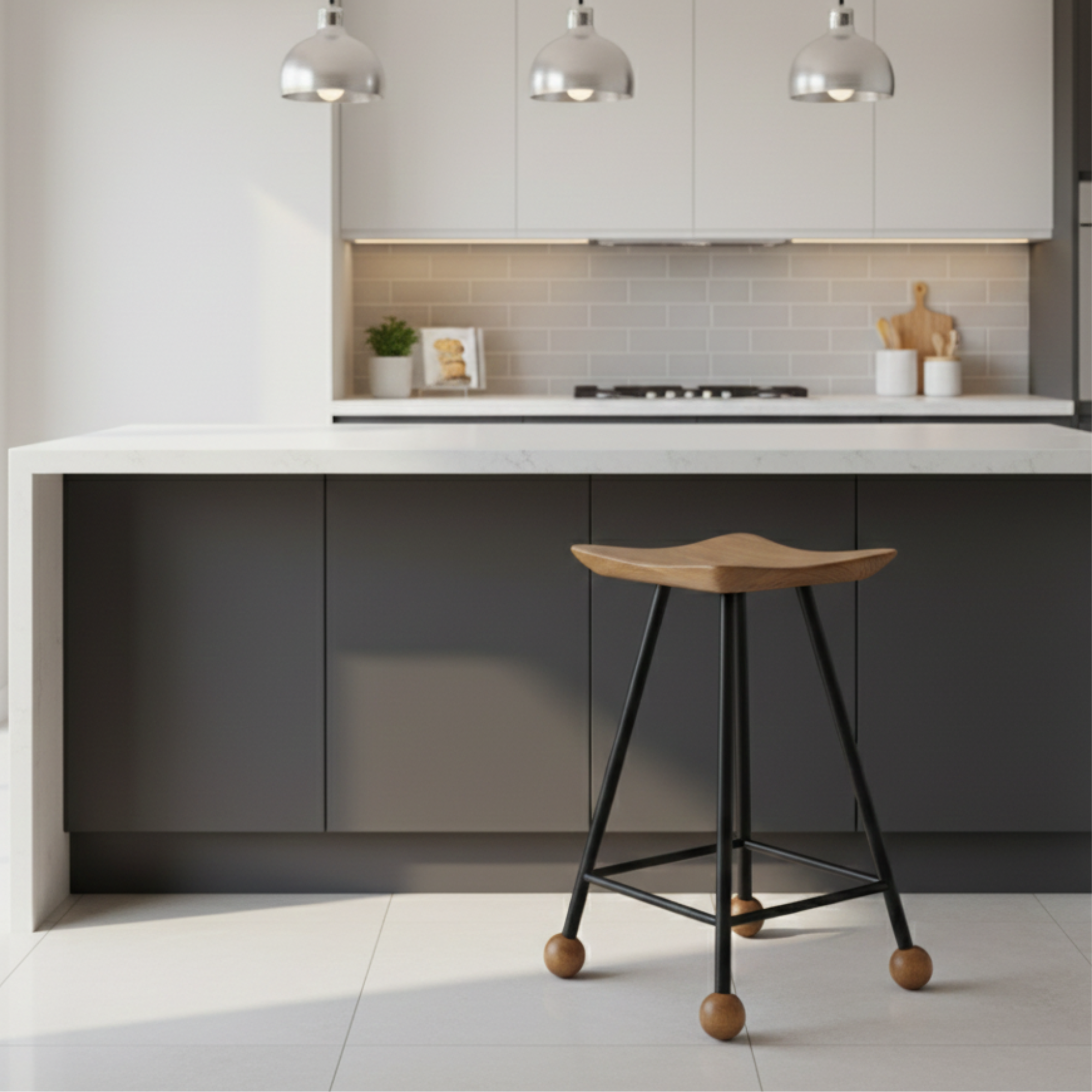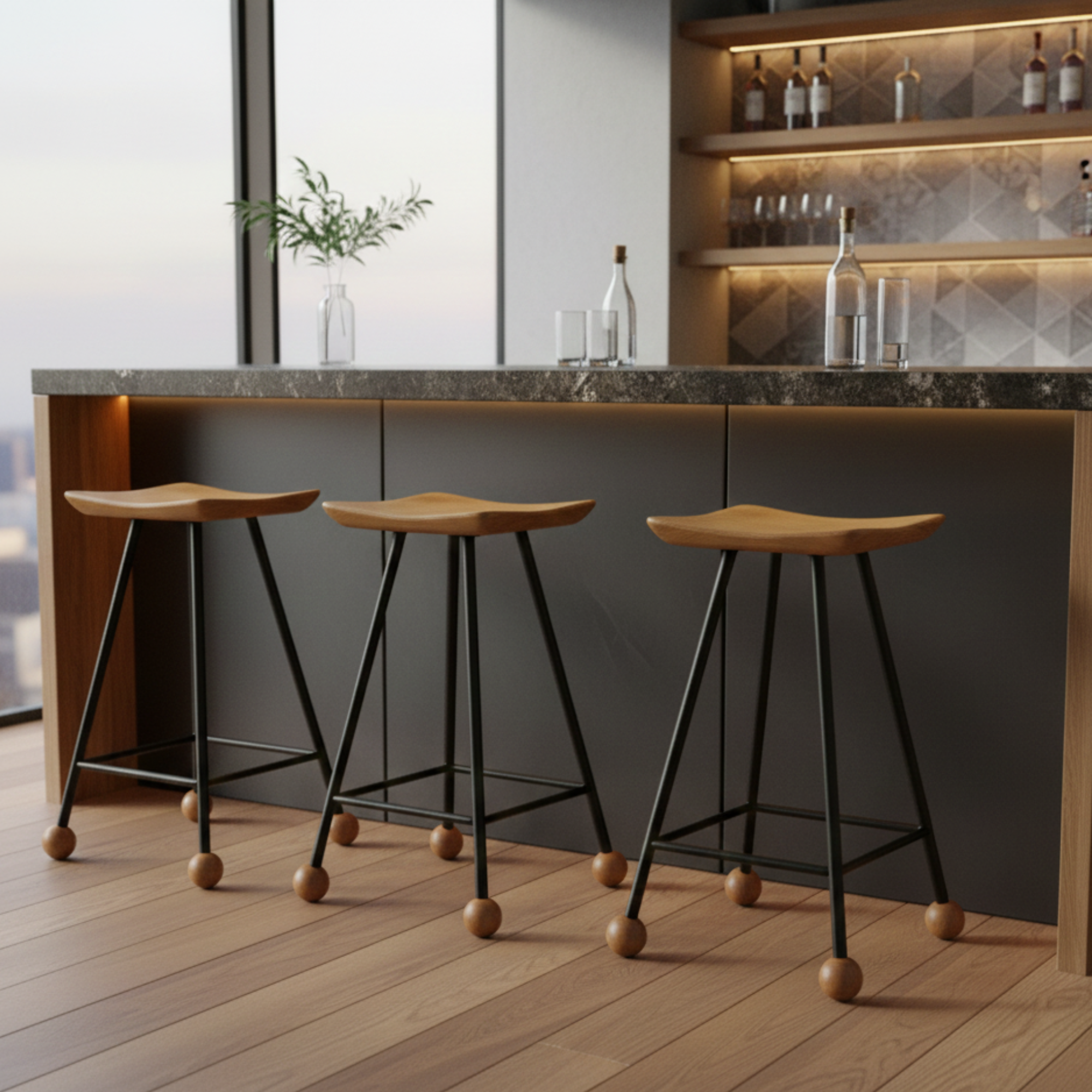 Tabure Ahşap Siyah Metal Ayaklı – 55cm