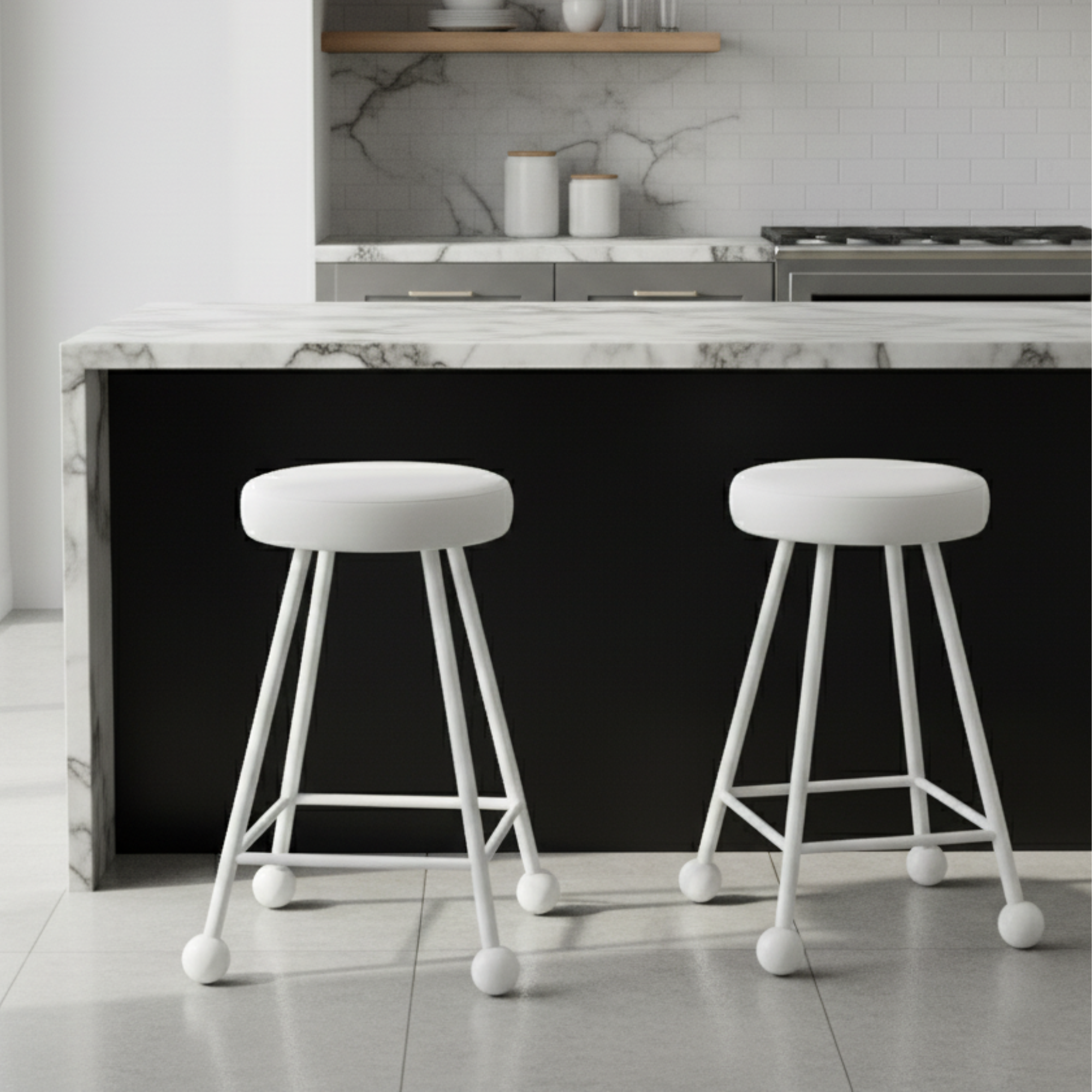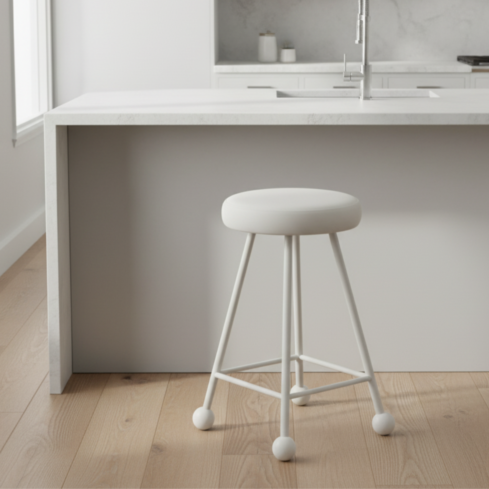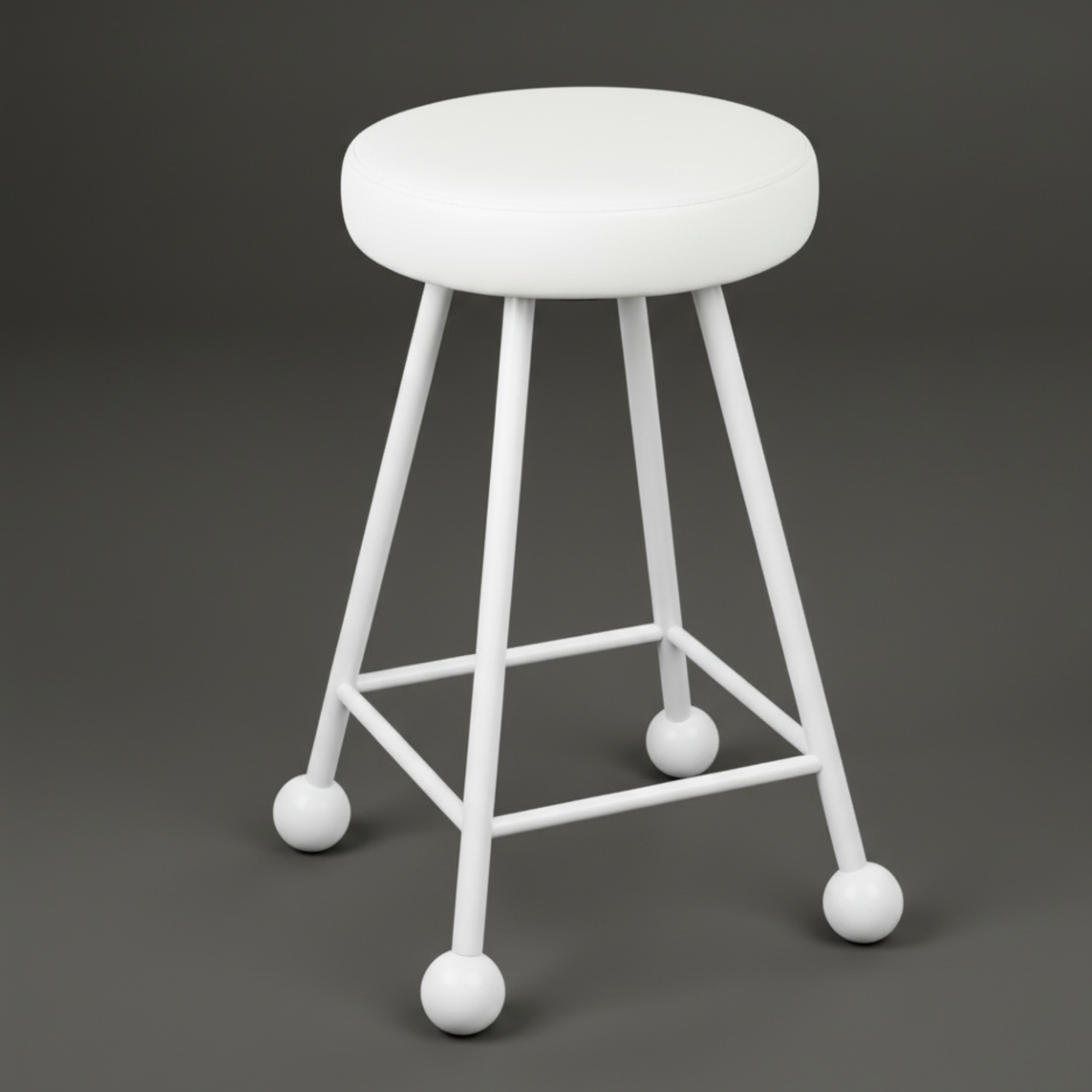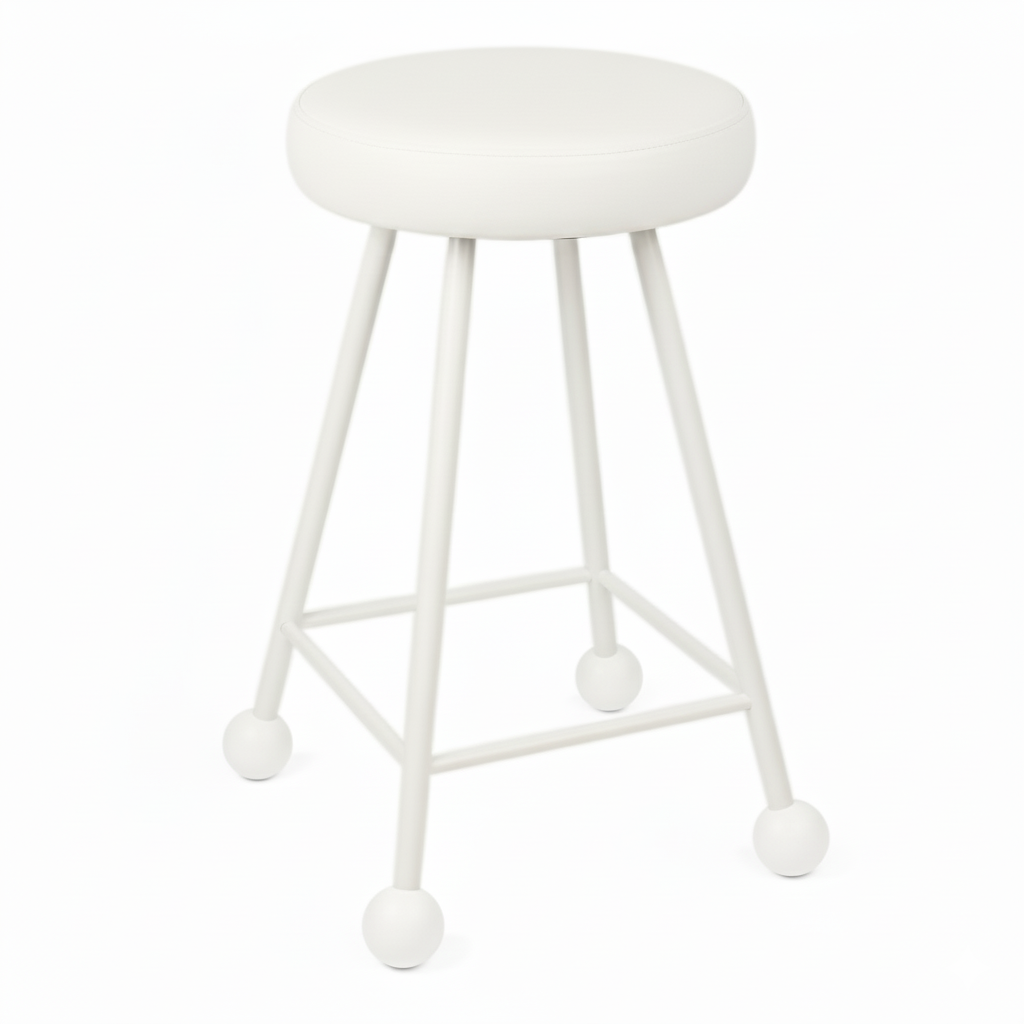 Tabure Deri Döşemeli Bembeyaz Metal Ayaklı – 55cm