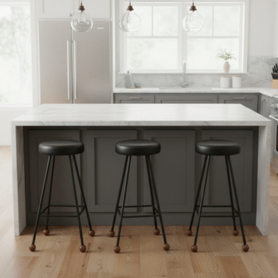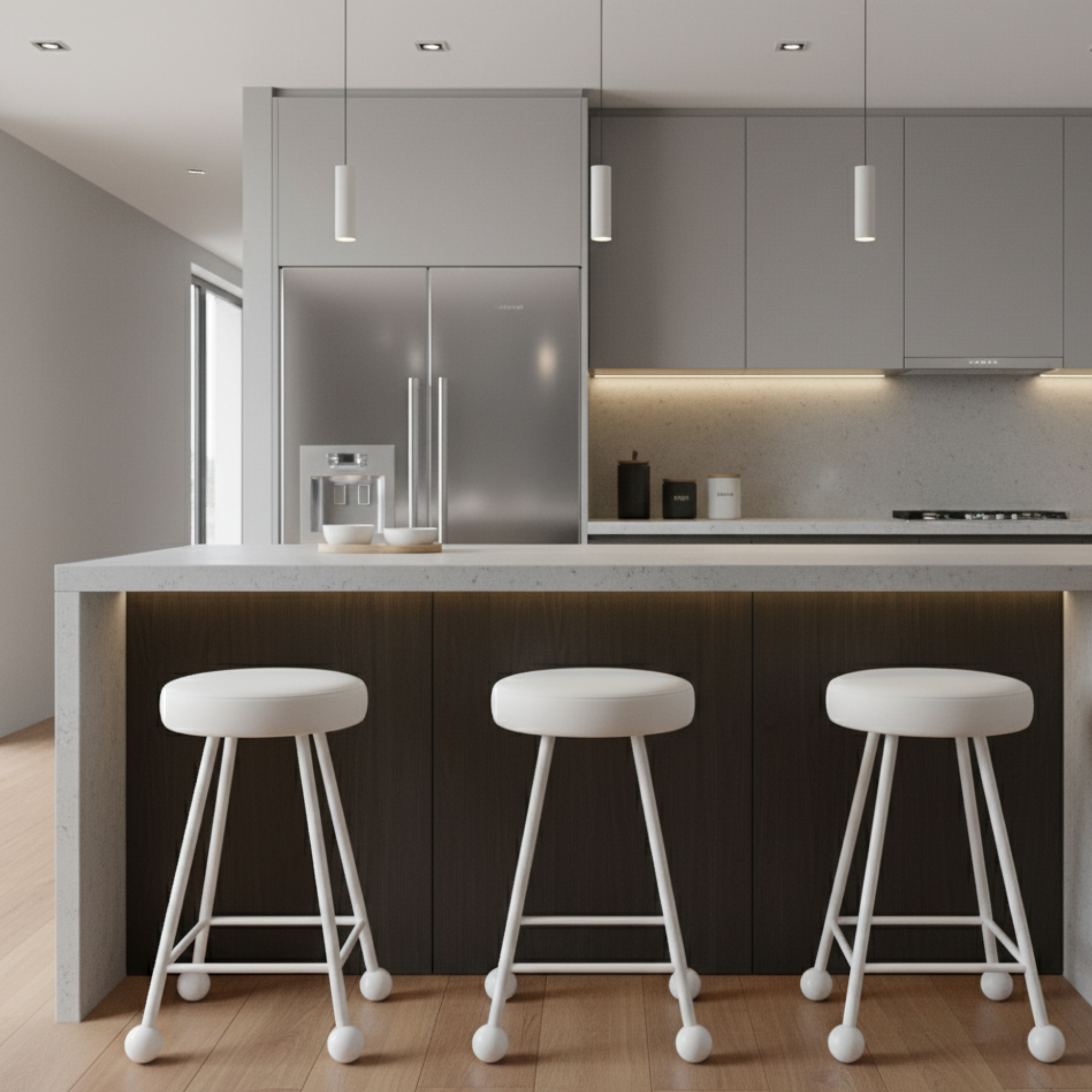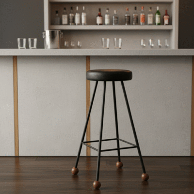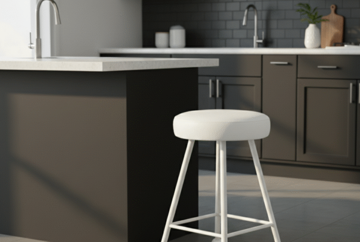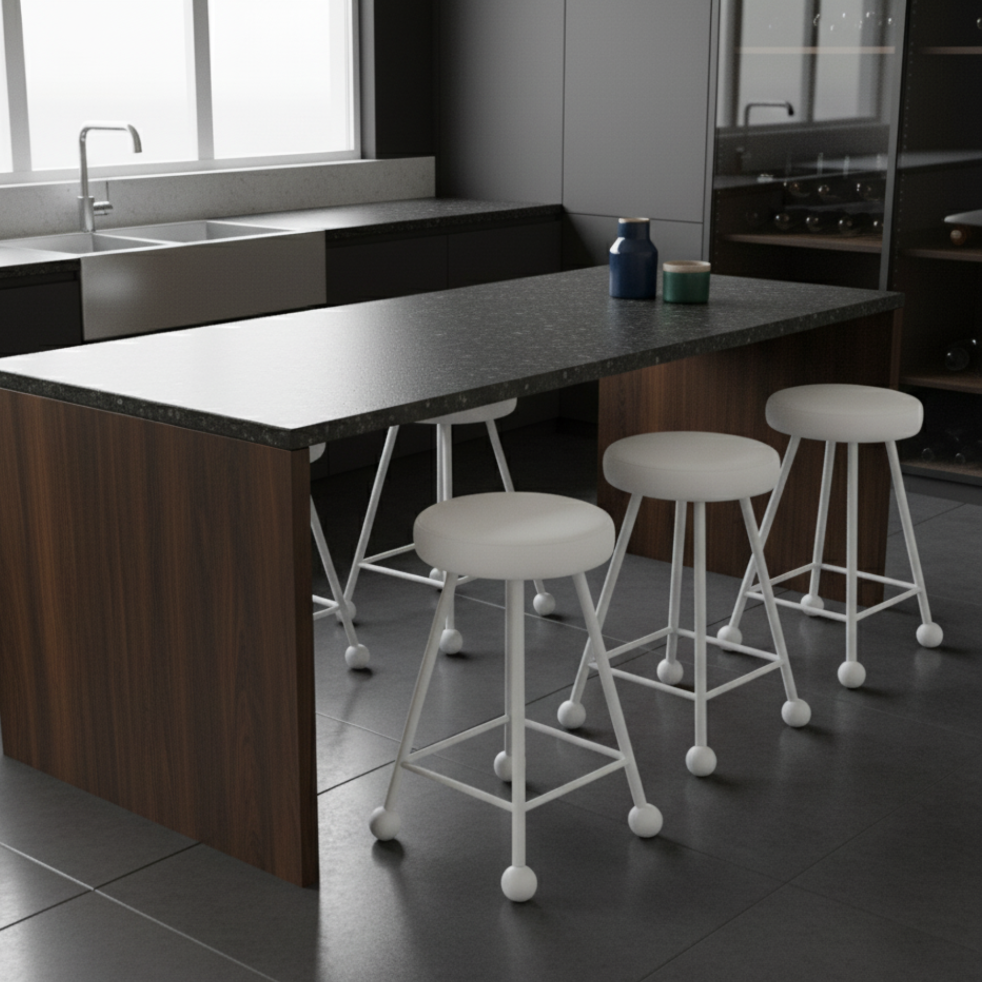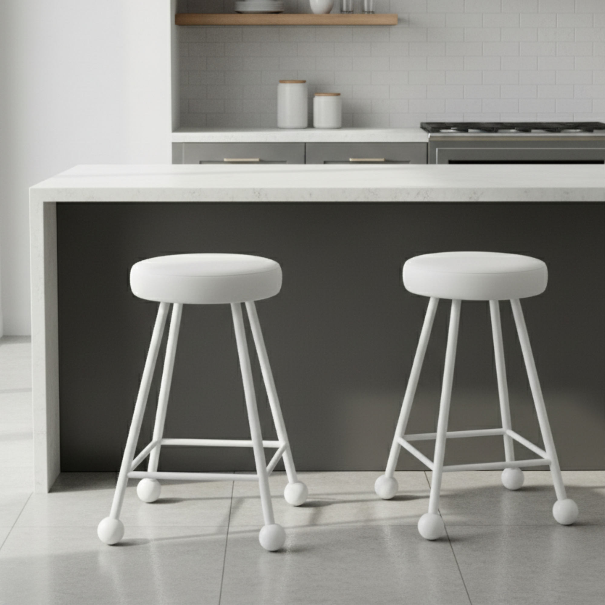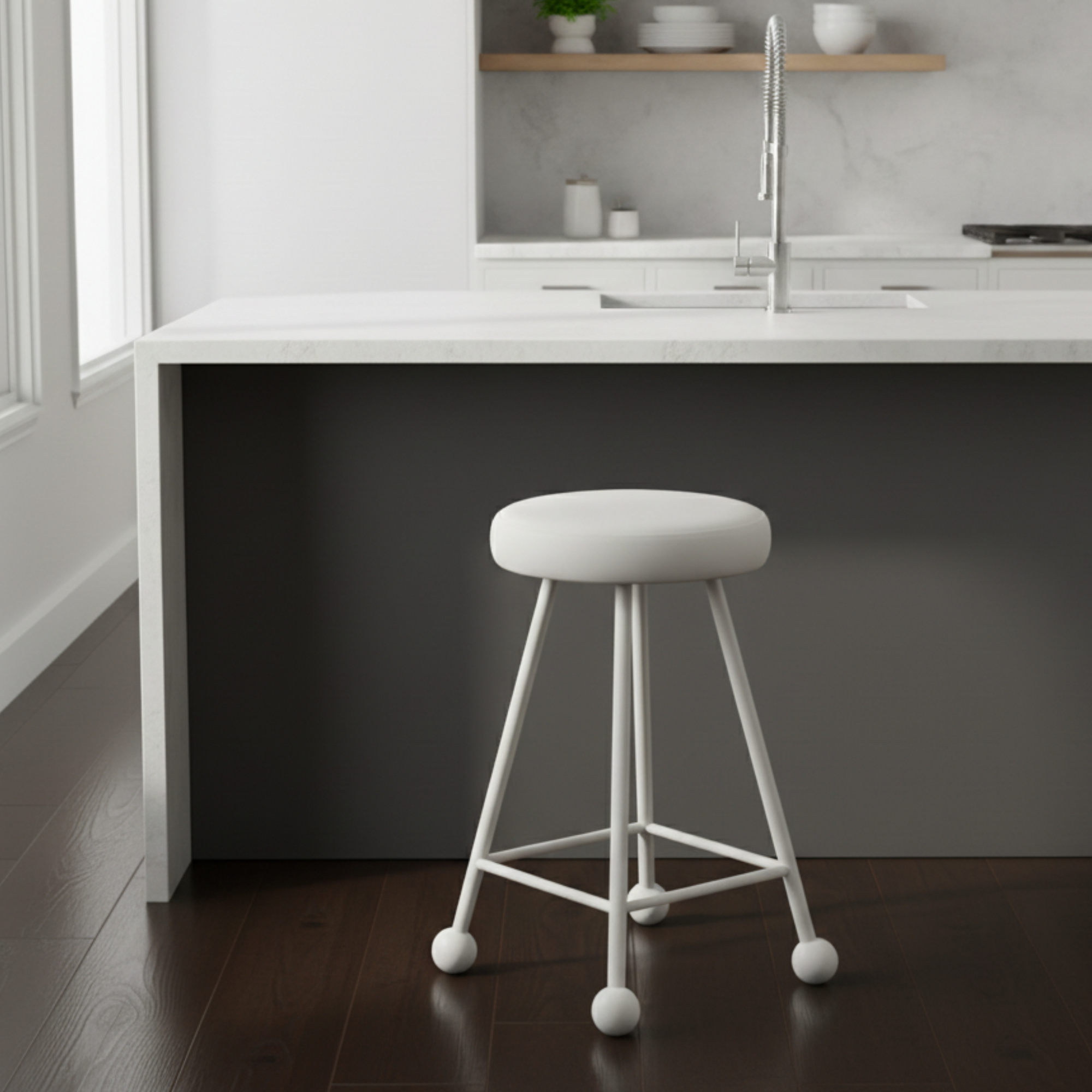 Tabure Deri Döşemeli Bembeyaz Metal Ayaklı – 55cm