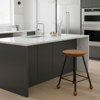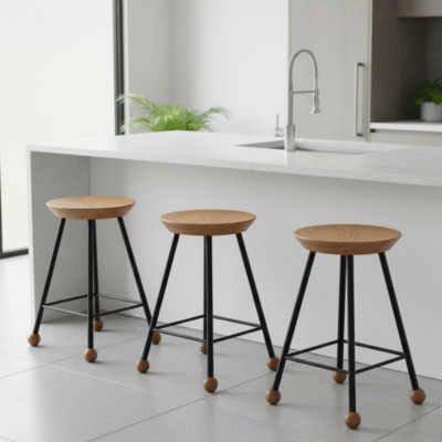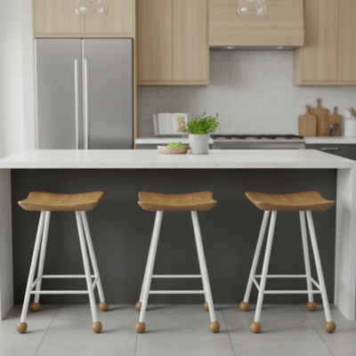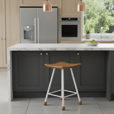Tabure Deri Döşemeli Kahverengi Metal Ayaklı – 47cm