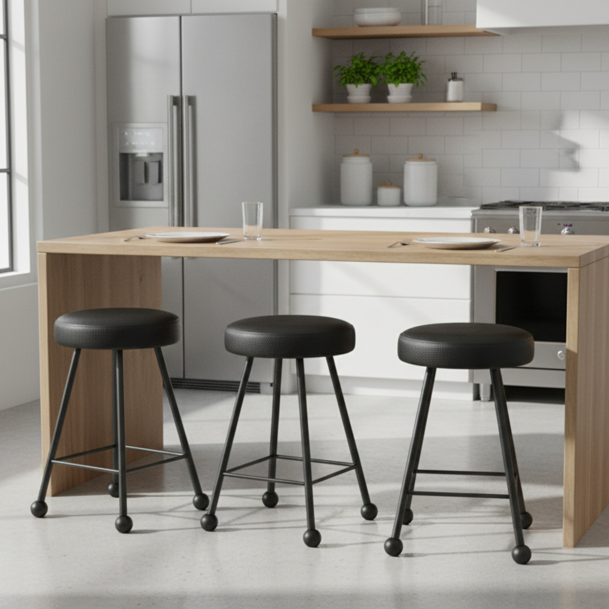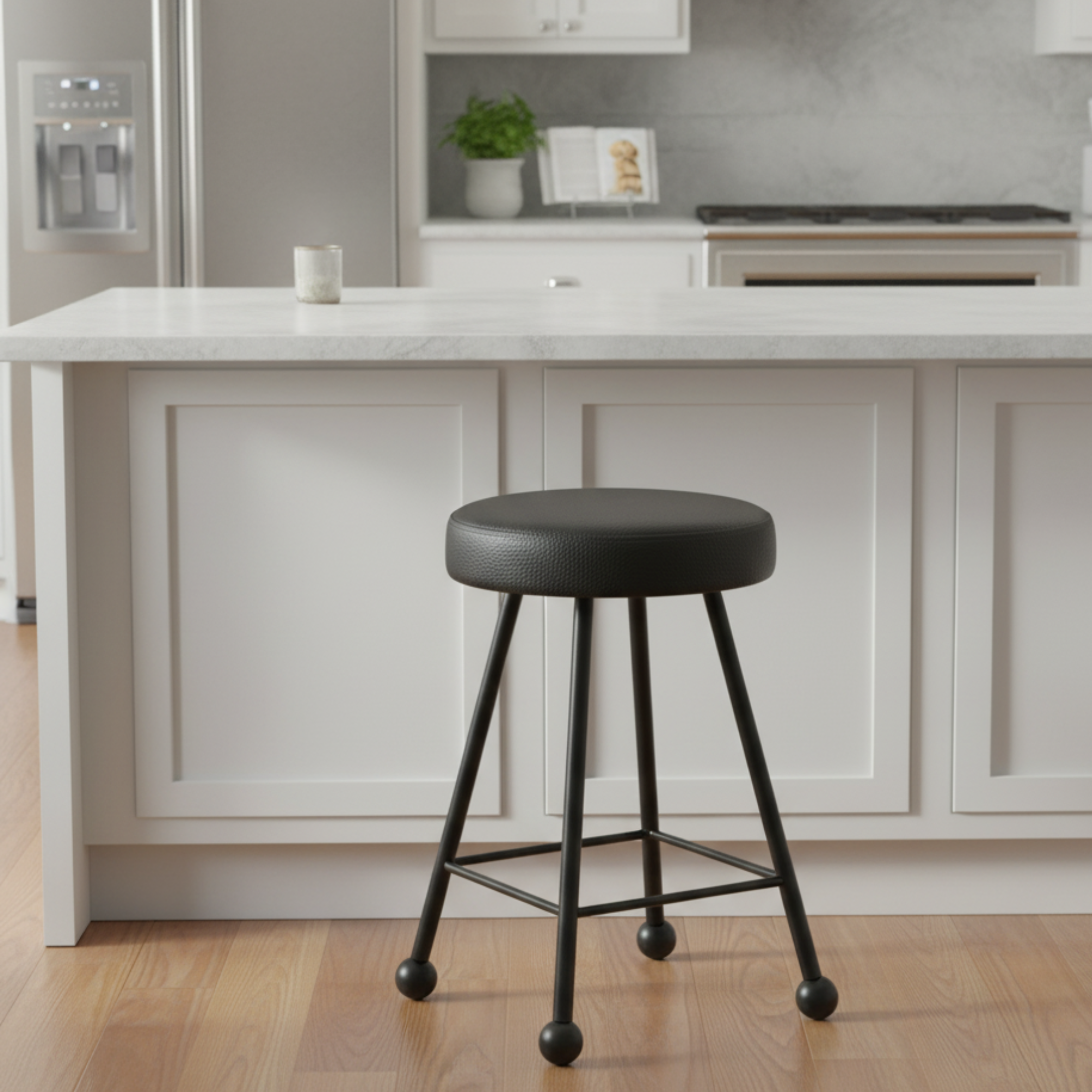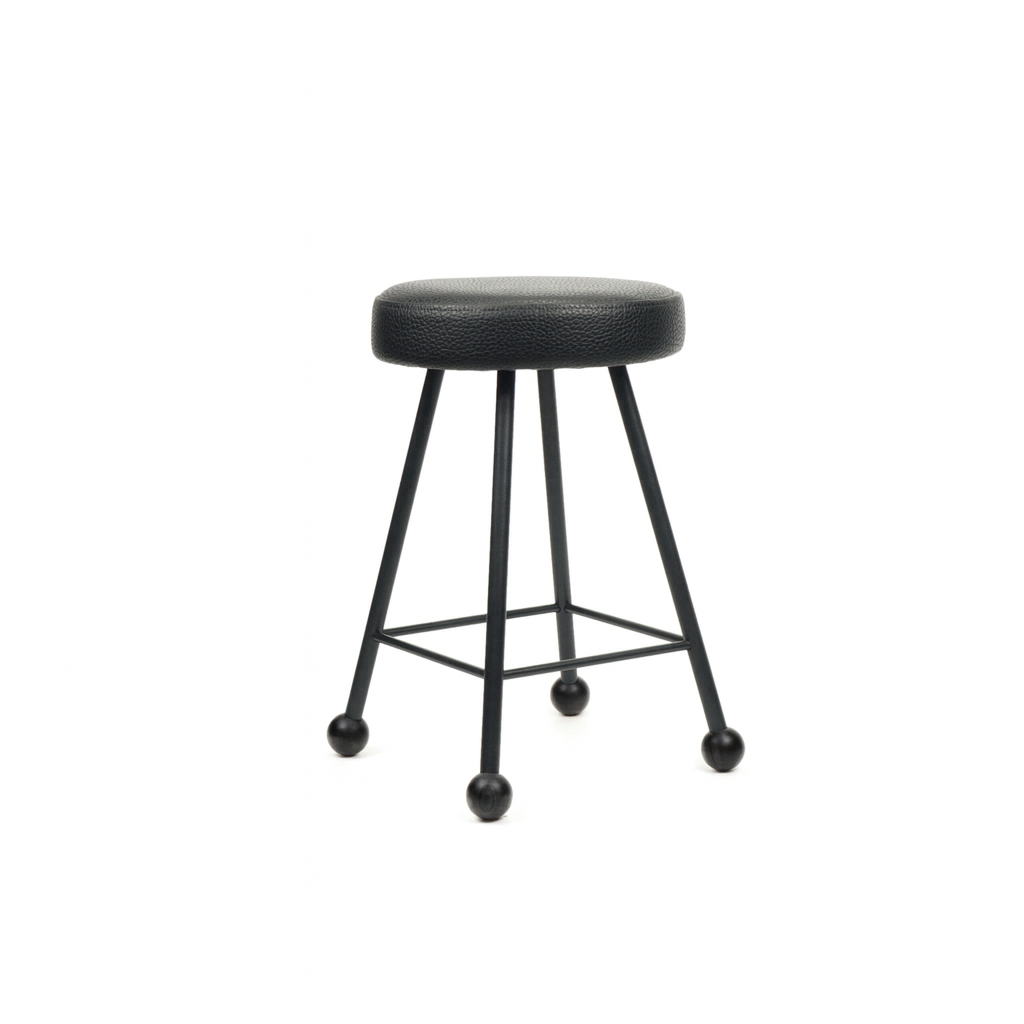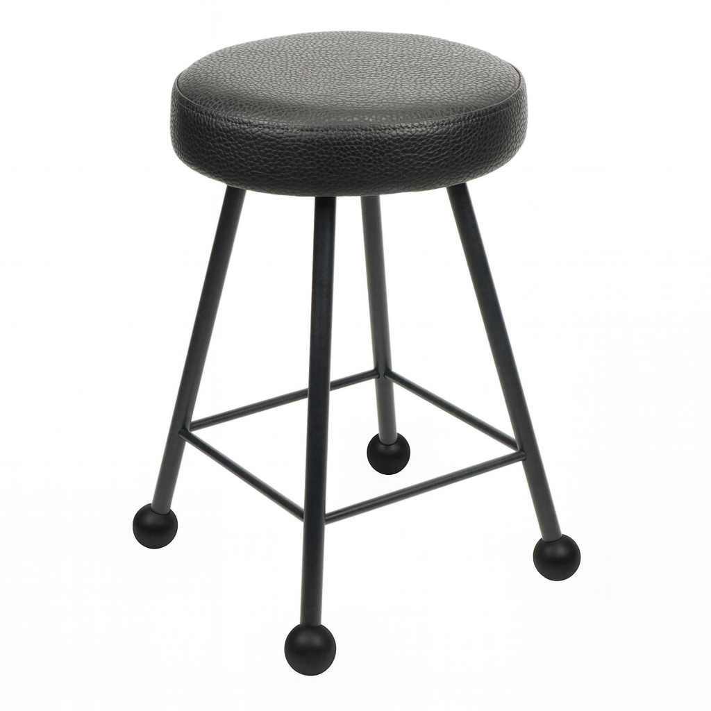 Tabure Deri Döşemeli Simsiyah Metal Ayaklı – 47cm