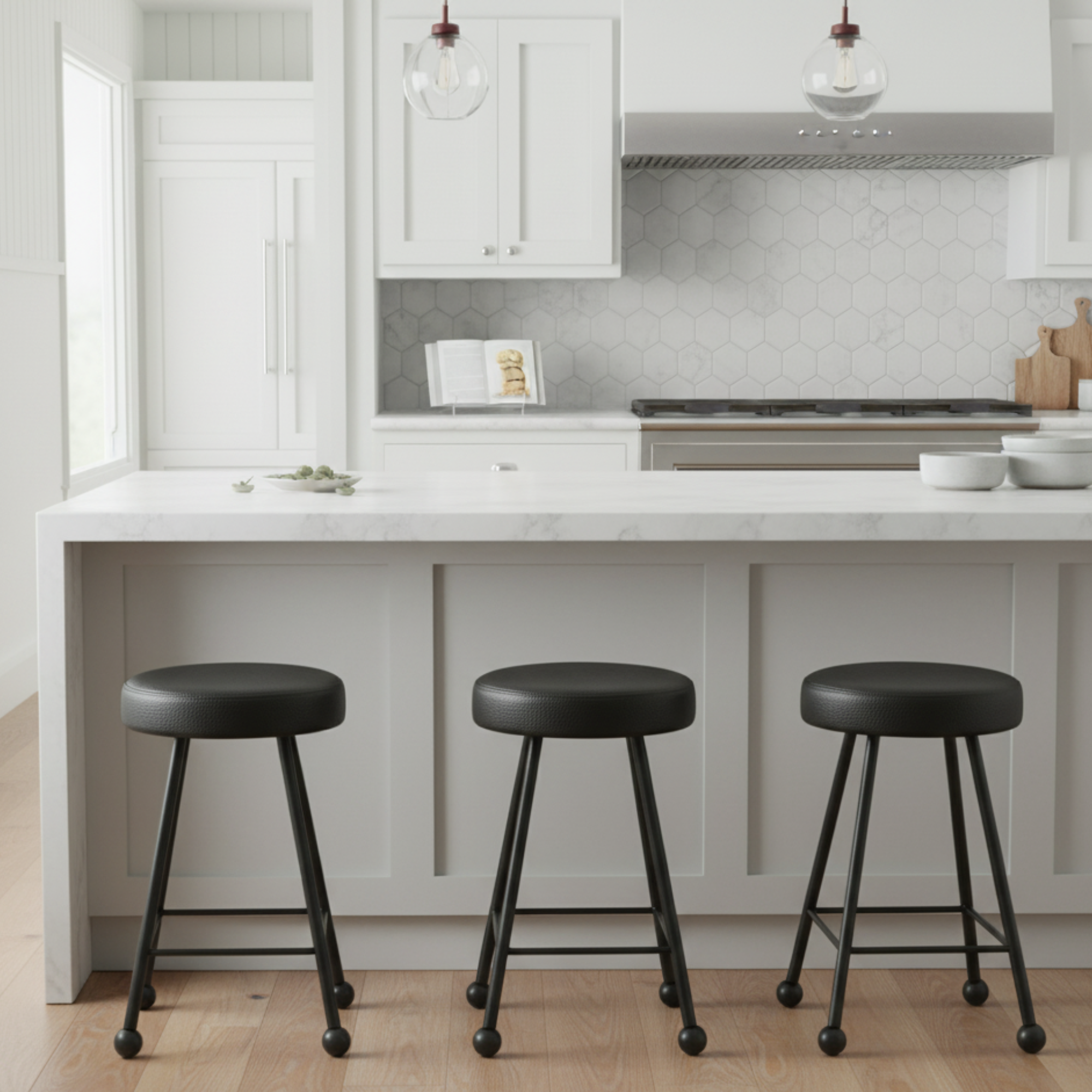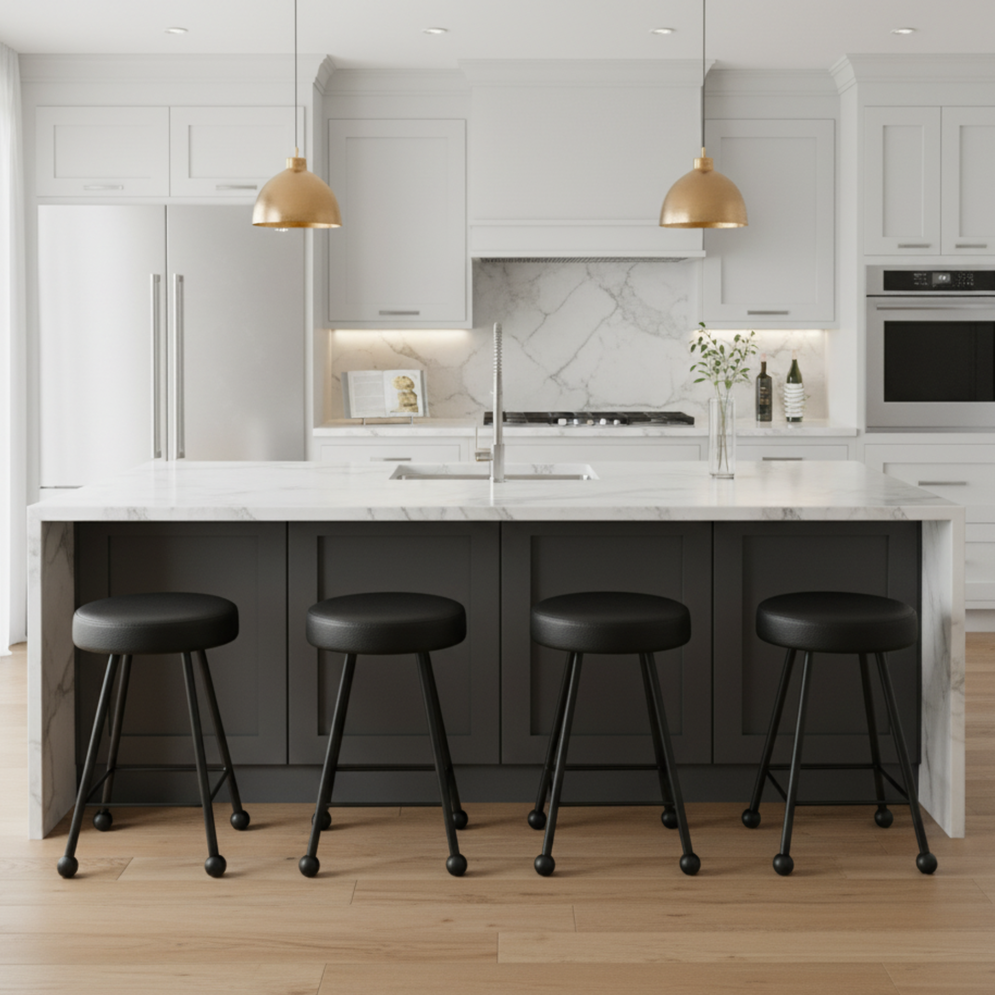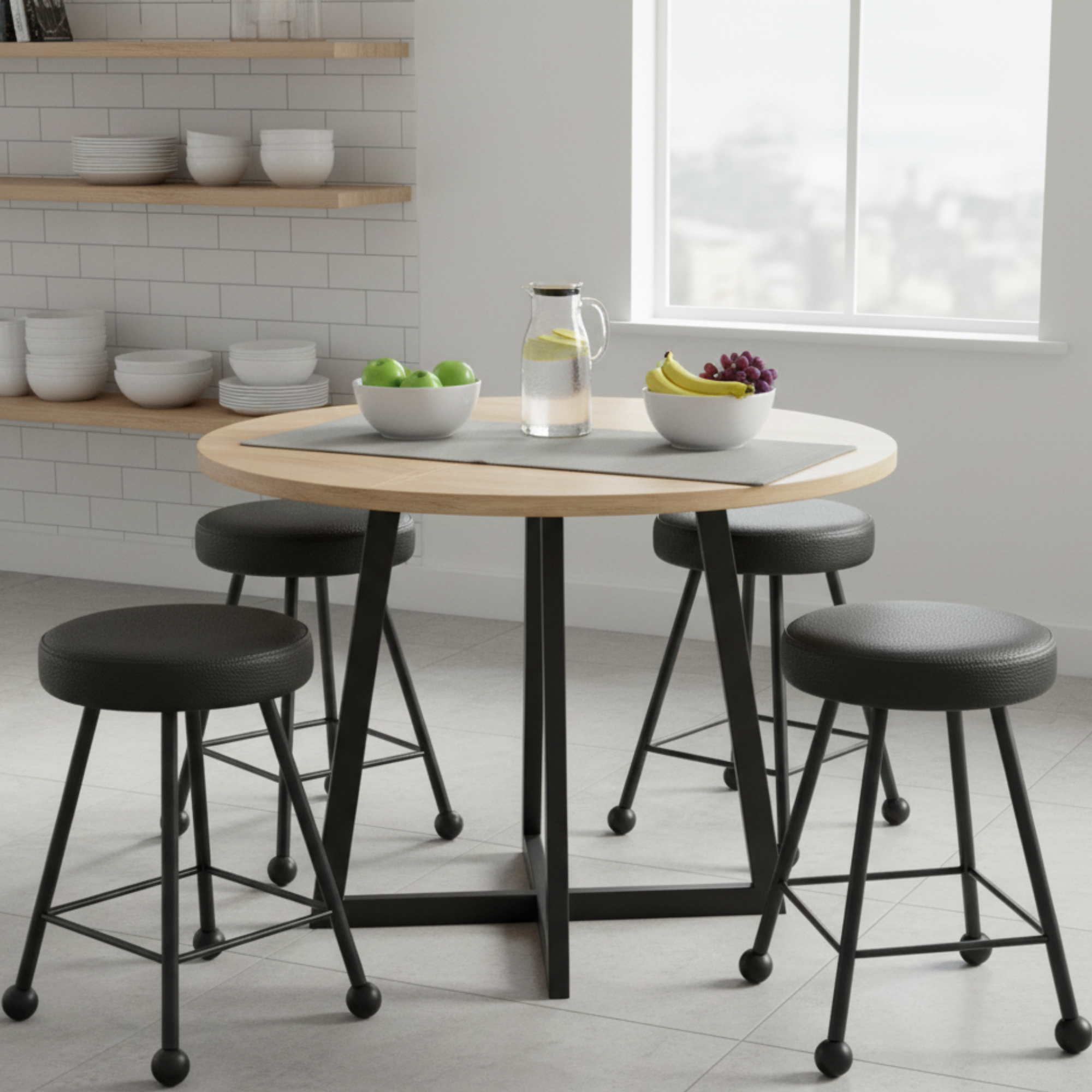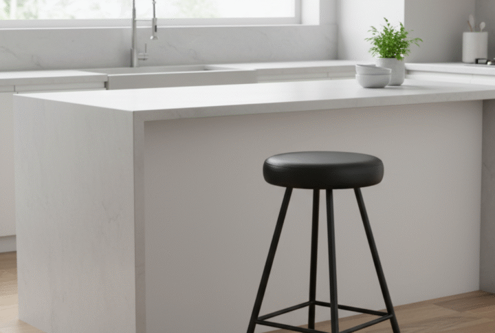 Tabure Deri Döşemeli Simsiyah Metal Ayaklı – 47cm