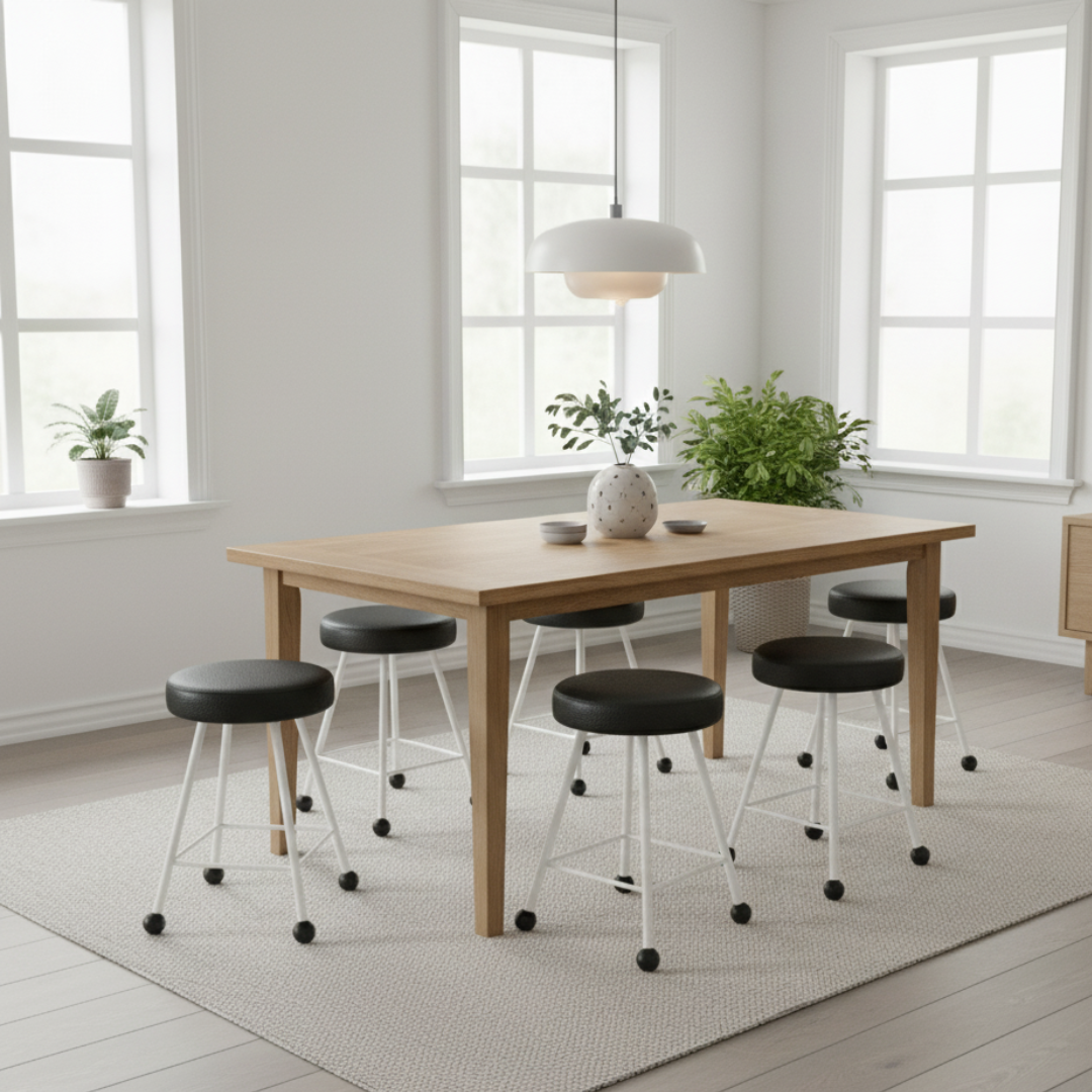 Tabure Deri Döşemeli Siyah Beyaz Metal Ayaklı – 47cm